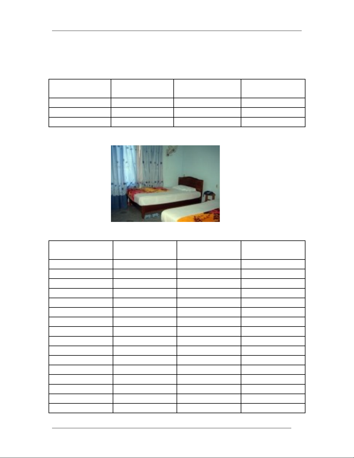 Type of room Number of room Price for