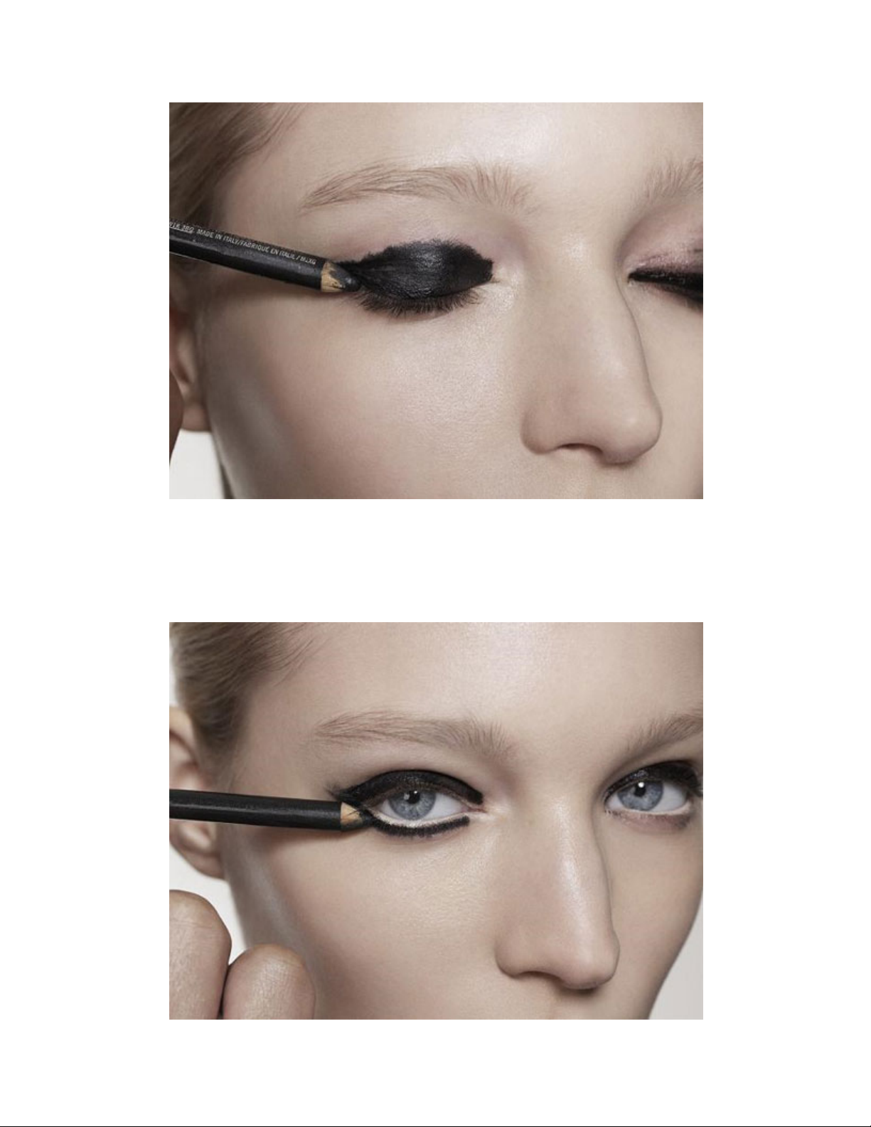 Đối với mi mắt trên, dùng một chiếc cọ nhỏ có đầu lông tròn mềm để tán loang màu đen.