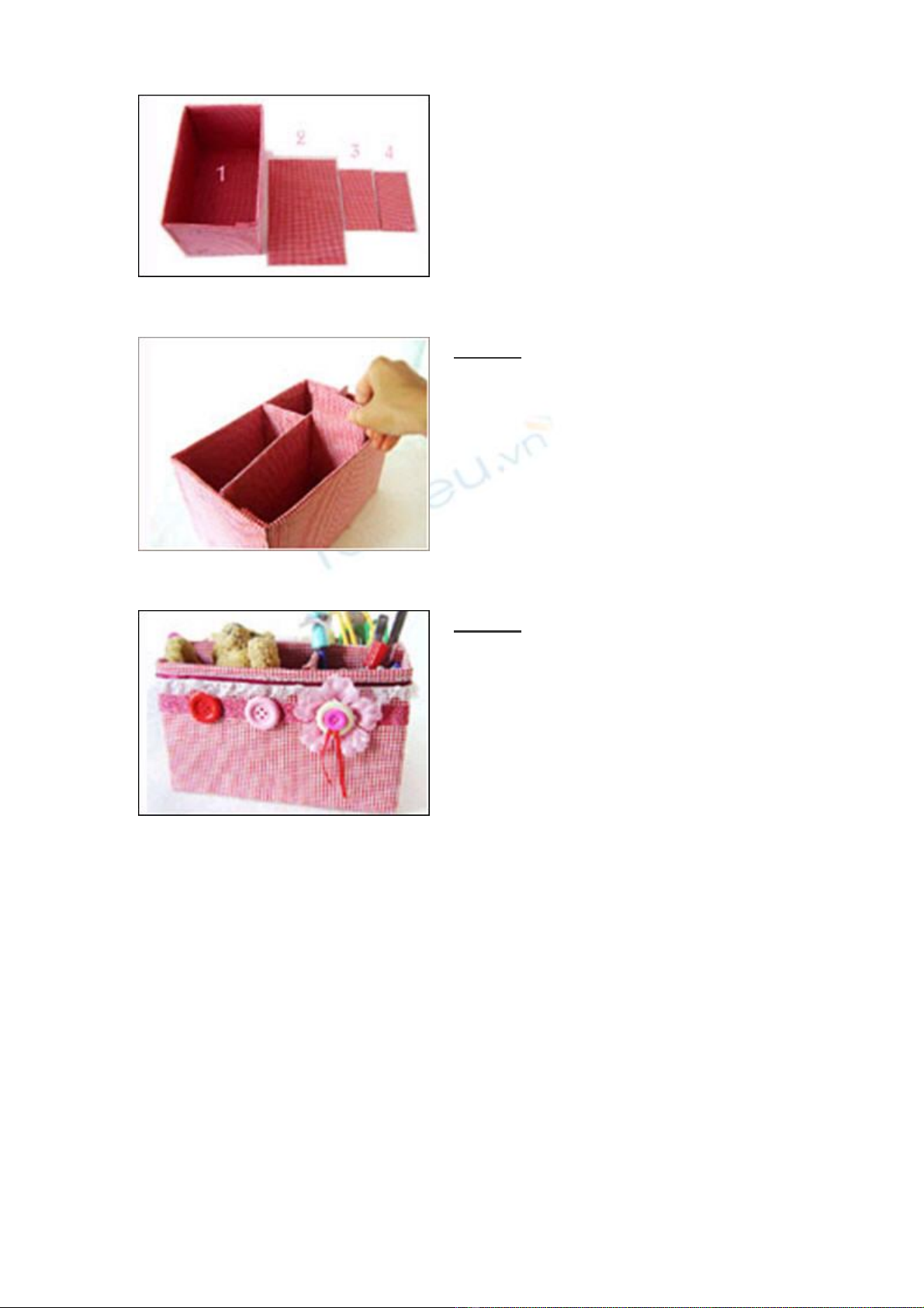 - Trang trí bên ngoài hộp bằng ruy băng, cúc