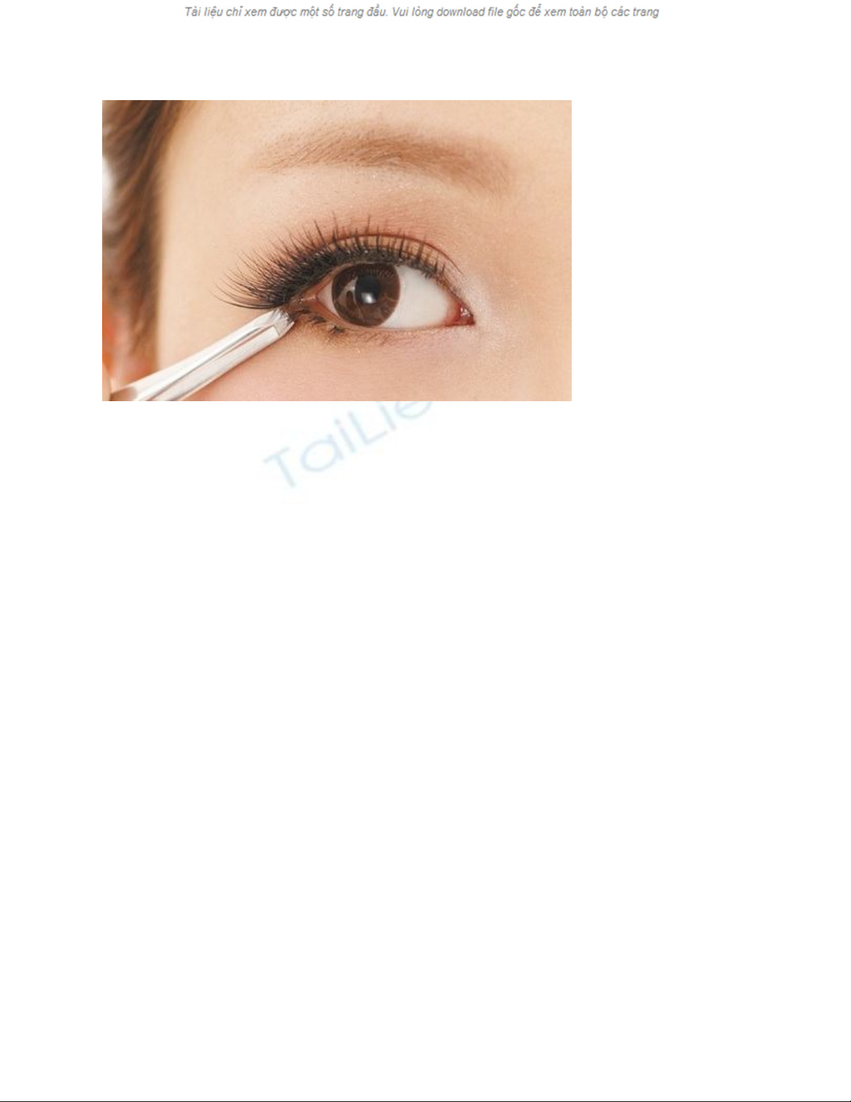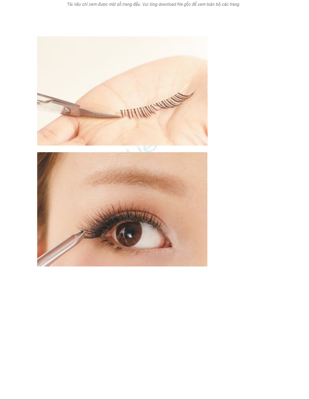 Bước 7: Với mi dưới, bạn sử dụng từng sợi lông mi giả như trong hình, gắn từ 2-3 sợi