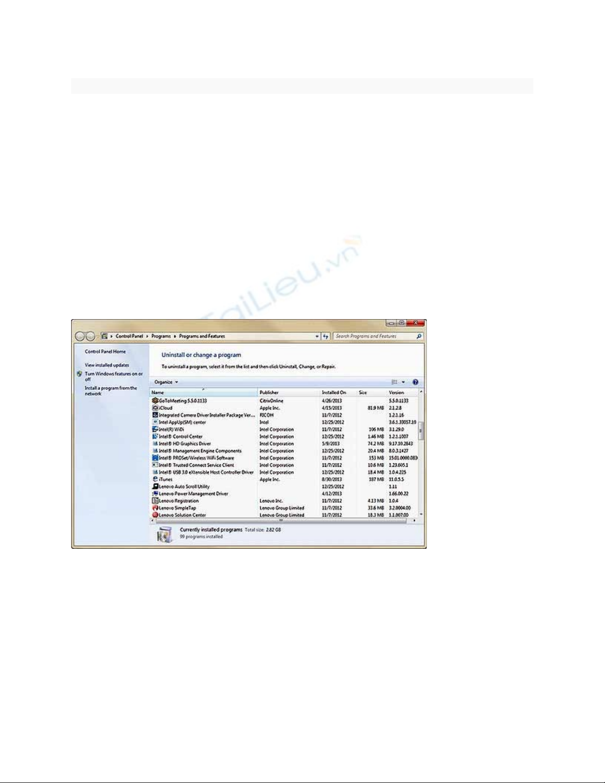 th hi u hóa các ch ng trình này, b n m Control Panels\ Programs and ươ