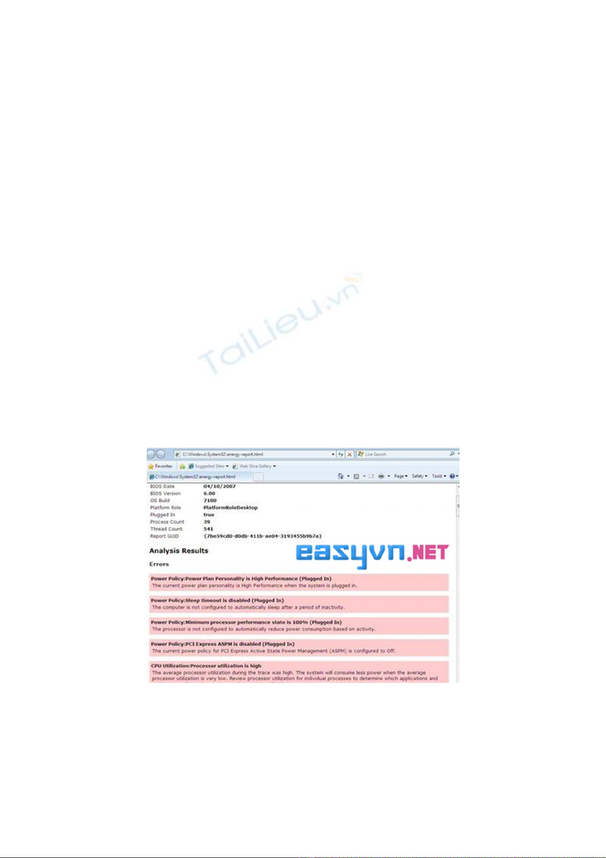 Khuyến nghị: Hãy sử dụng bản báo cáo “Power Efficiency Diagnostics Report” để đưa ra những