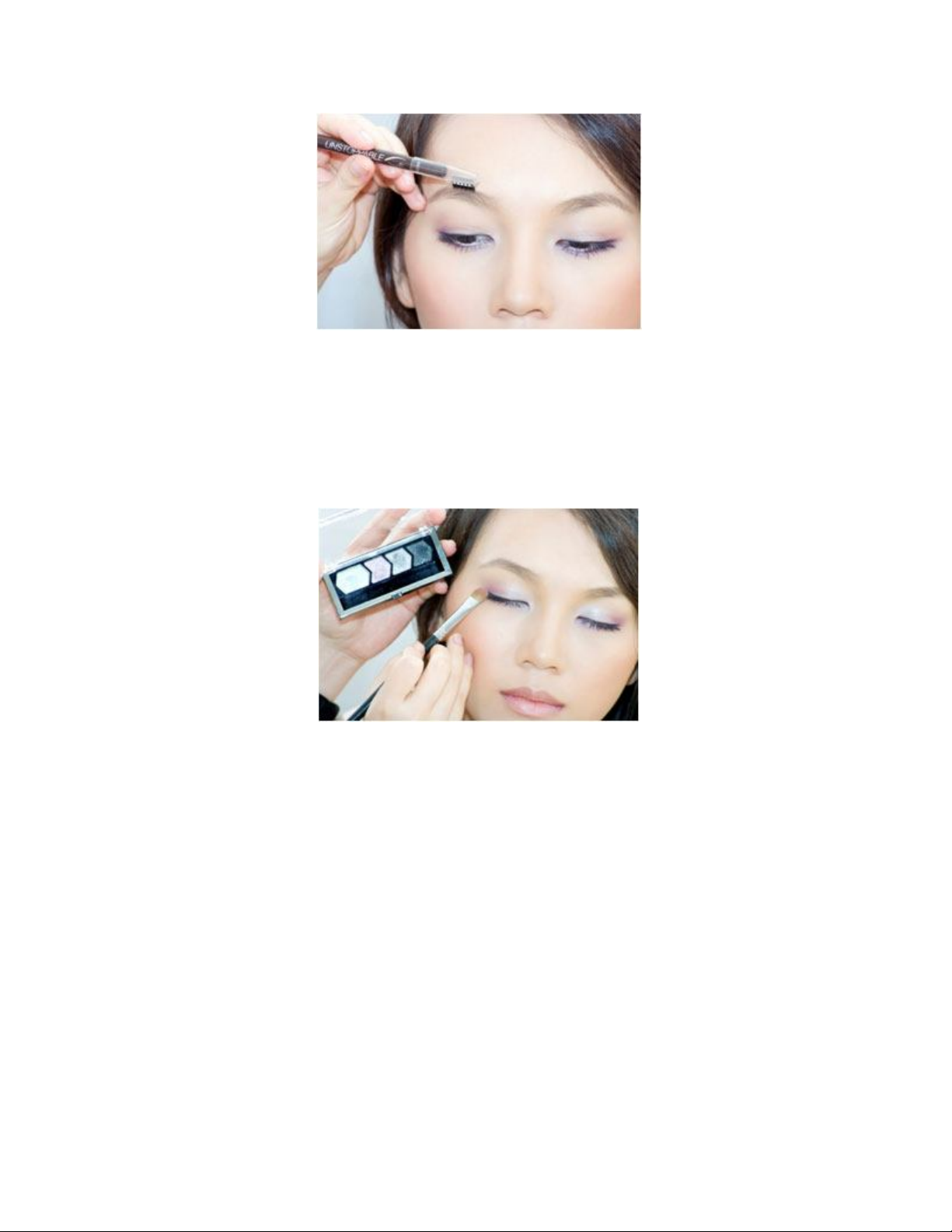 Dùng chì tạo nét chân mày thật nhẹ, sau đó chủ yếu sử dụng đầu cọ để tán phần bột