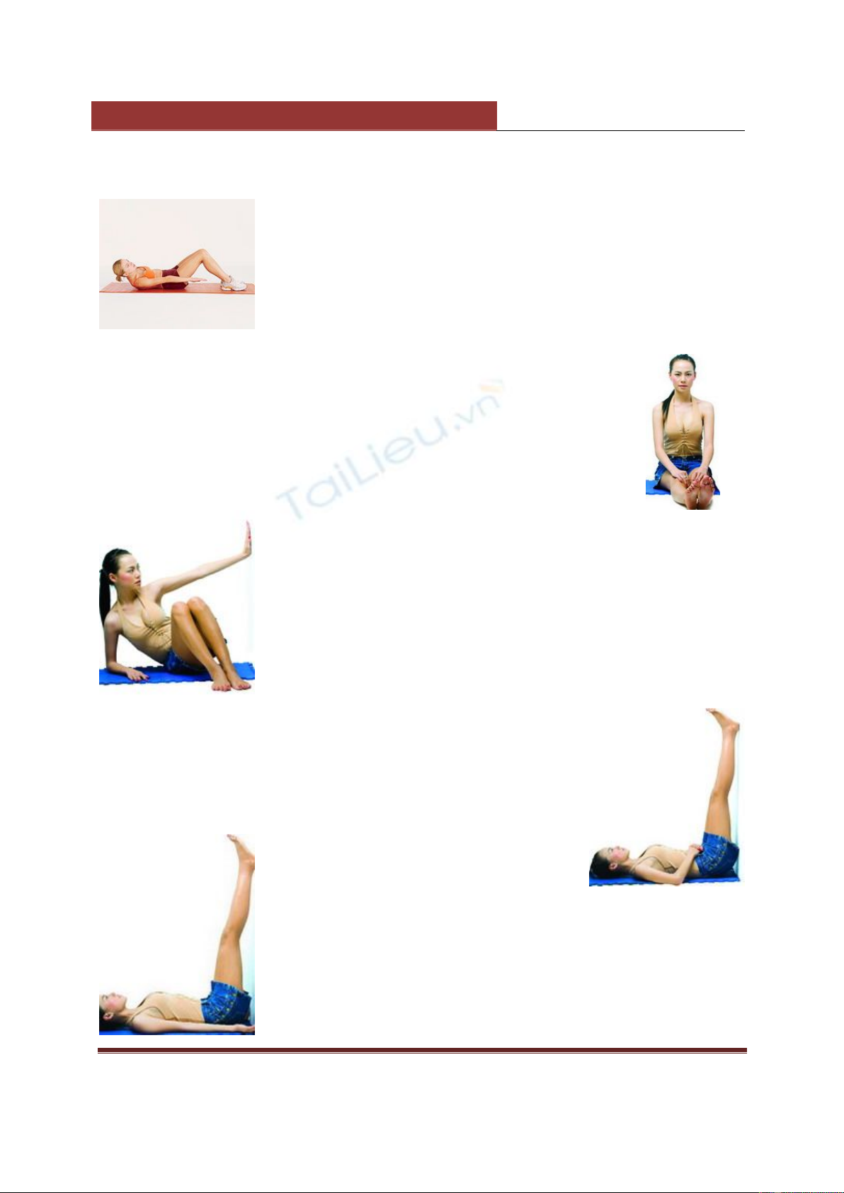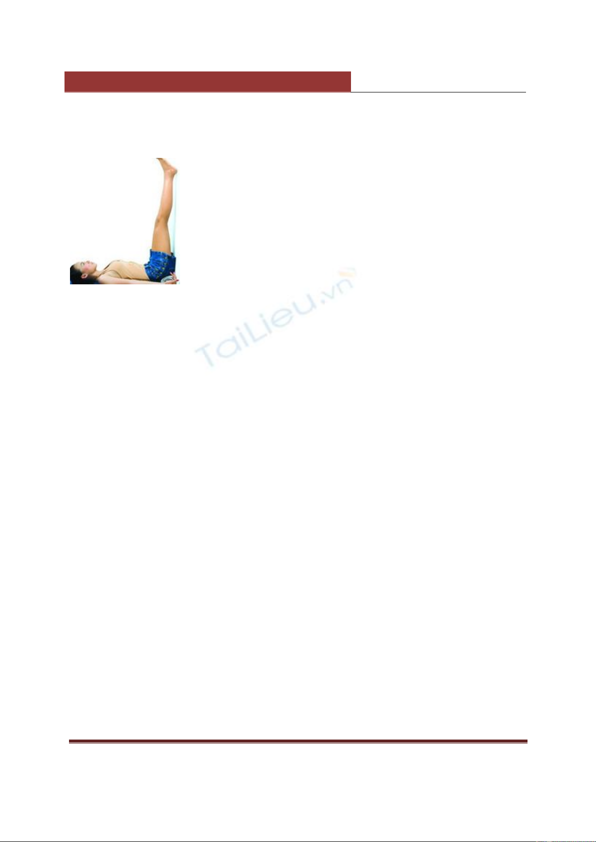1- Bài tập cơ bụng dưới: Nằm thẳng xuôi tay theo giường, hai chân thẳng. Hít sâu từ từ,