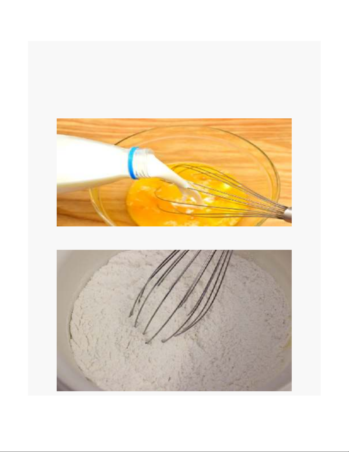 Sau đó cho bột mỳ, vani, ít muối vào trộn đều hỗn hợp cho đến khi sền sệt là được.
