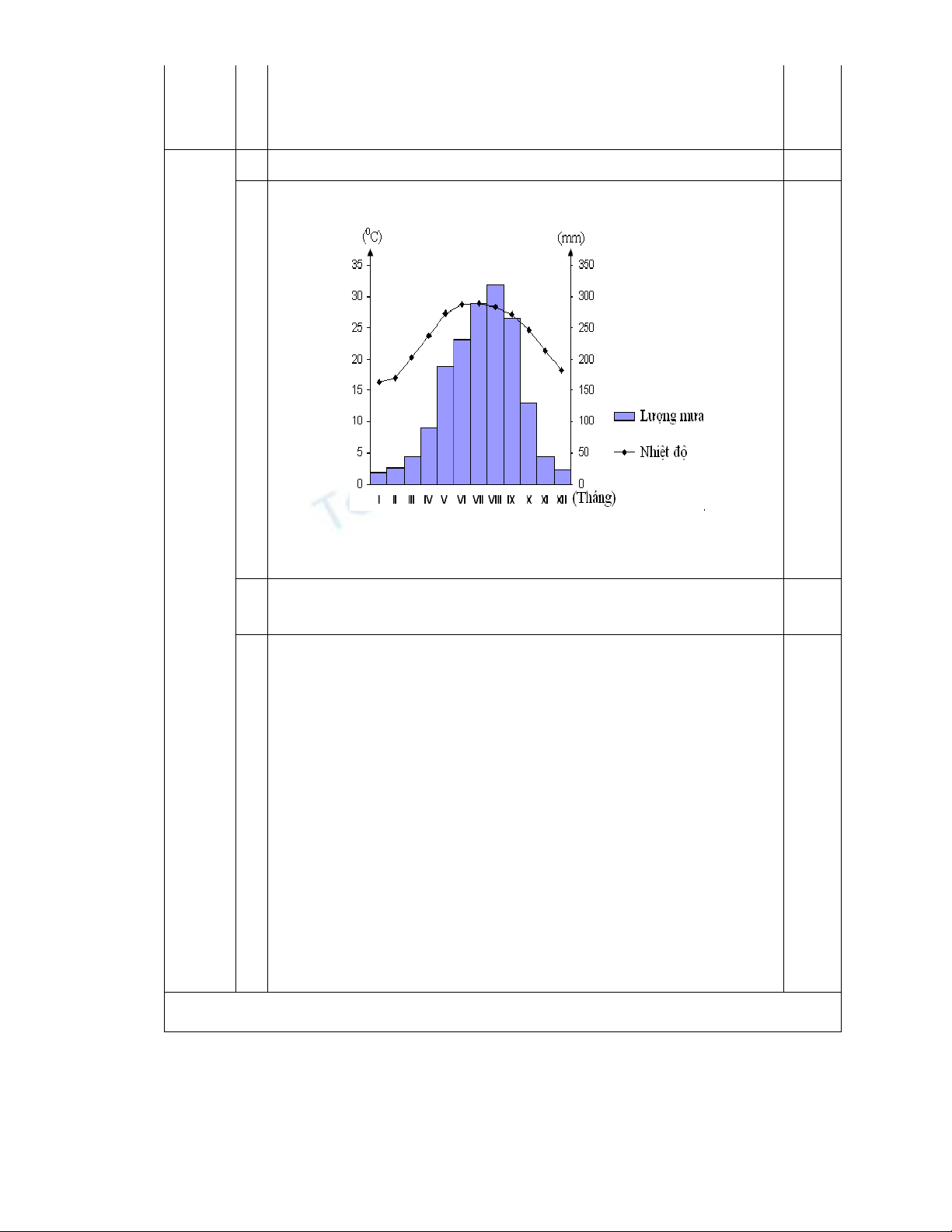 1. Vẽ biểu đồ kết hợp thể hiện nhiệt độ và lượng mưa trung bình tháng của