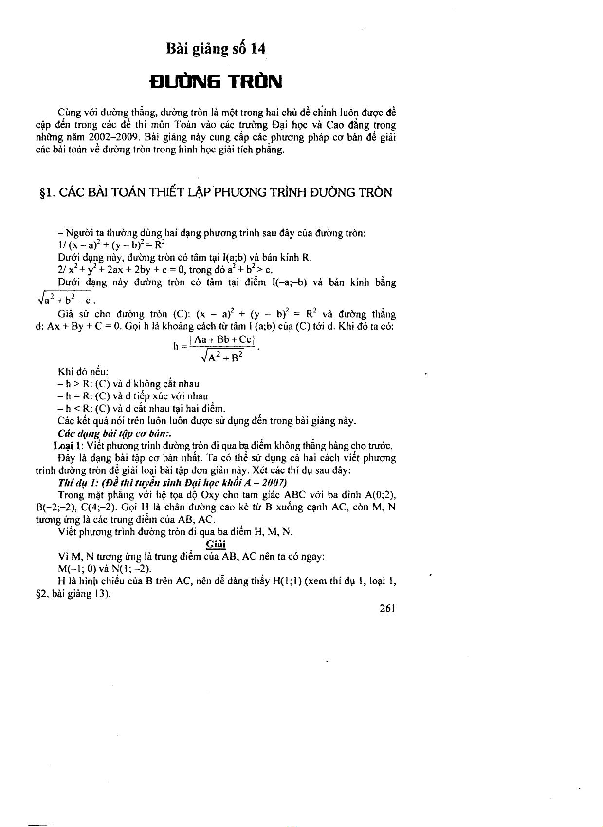 Tài liệu ôn thi đại học tham khảo gồm 22 bài giảng môn toán rất hay và bổ ích. Bài số 14: Đường tròn