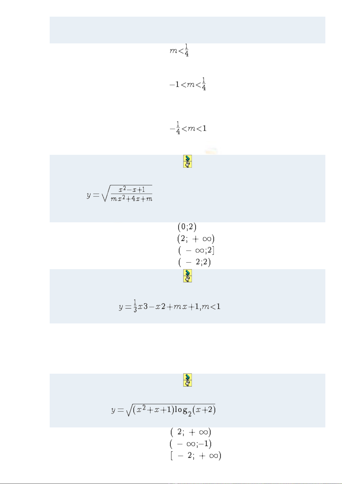 Cho hàm số . Tập xác định của hàm số là R thì m thuộc khoảng nào sau