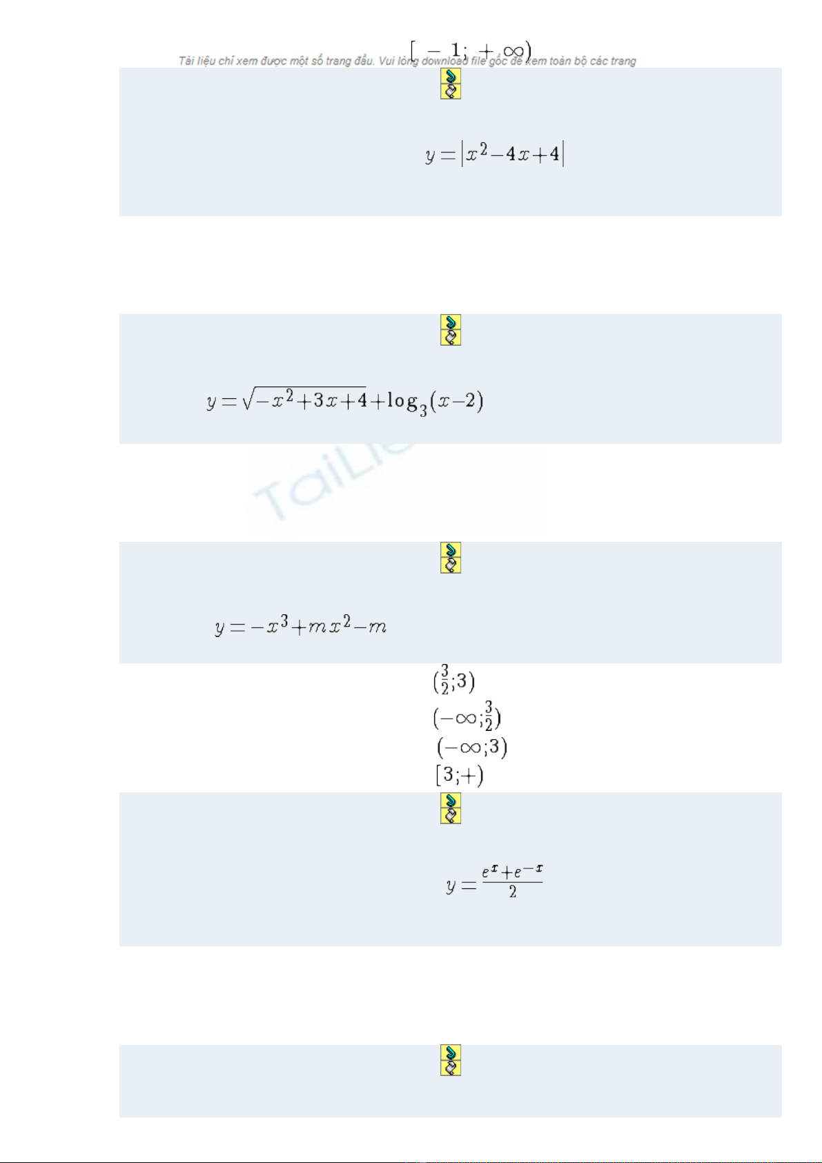 Hàm số đồng biến trên (1;2) thì m thuộc khoảng nào sau đây: