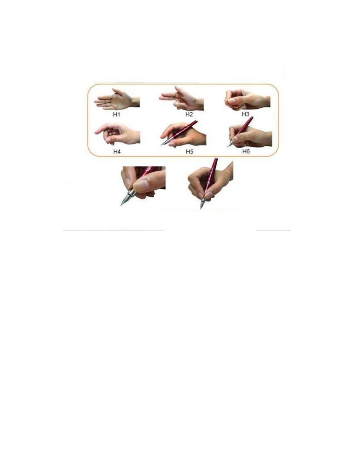 - Khoảng cách giữa các đầu ngón tay và ngòi bút là 2,5cm.