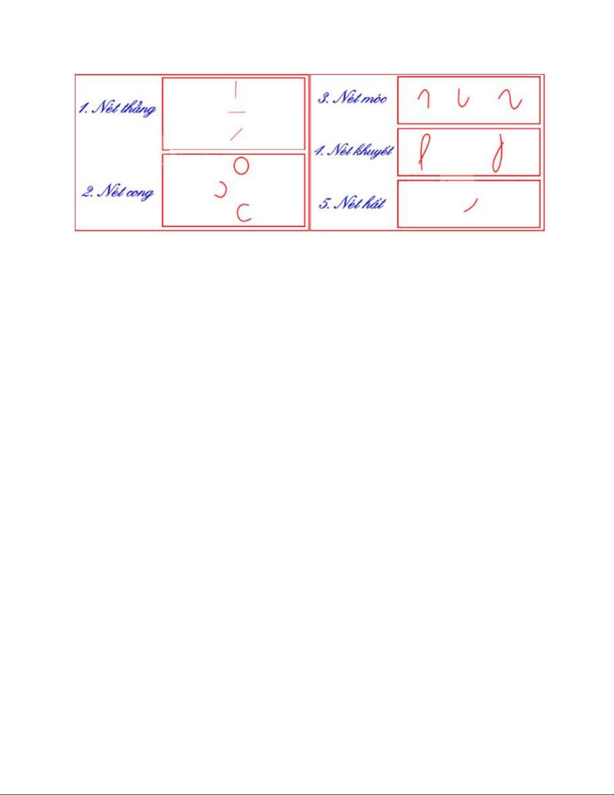 nét chữ cơ bản: bao gồm nét thẳng (2ly, 4ly) nét xiên, nét móc, nét cong (cong trái, cong