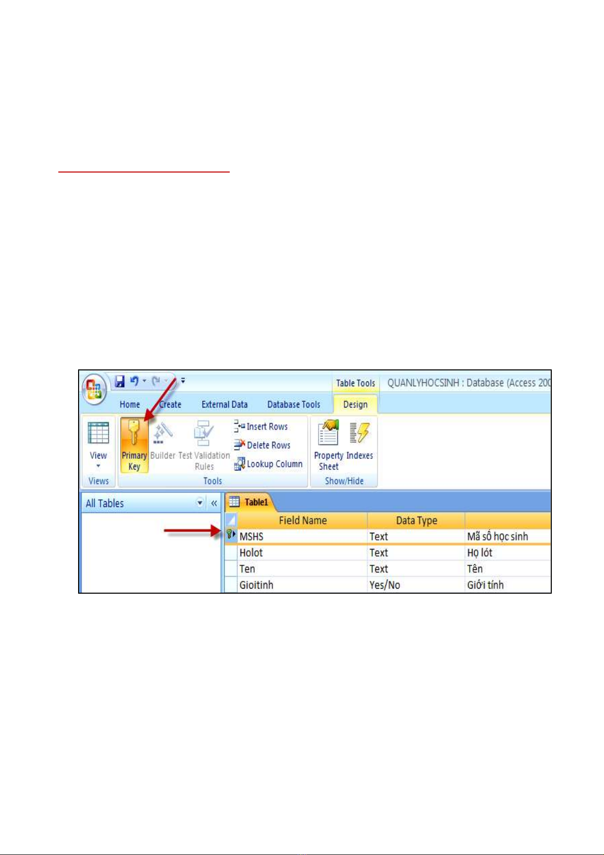 1. Nhấp đầu hàng sẽ chọn Trường Khóa > Nhấp chọn Primary Key ( Hình Chìa