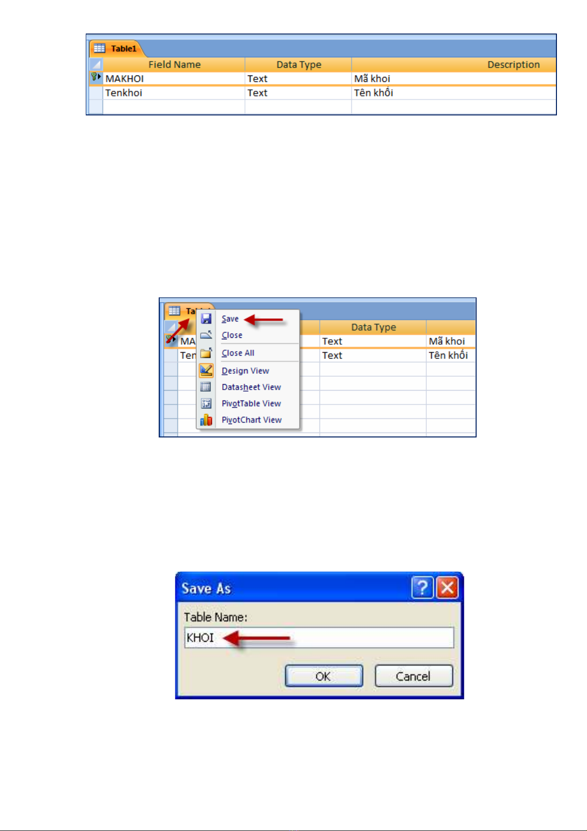 Save As , nhập tên Bảng vào hàng Table name > Ok .