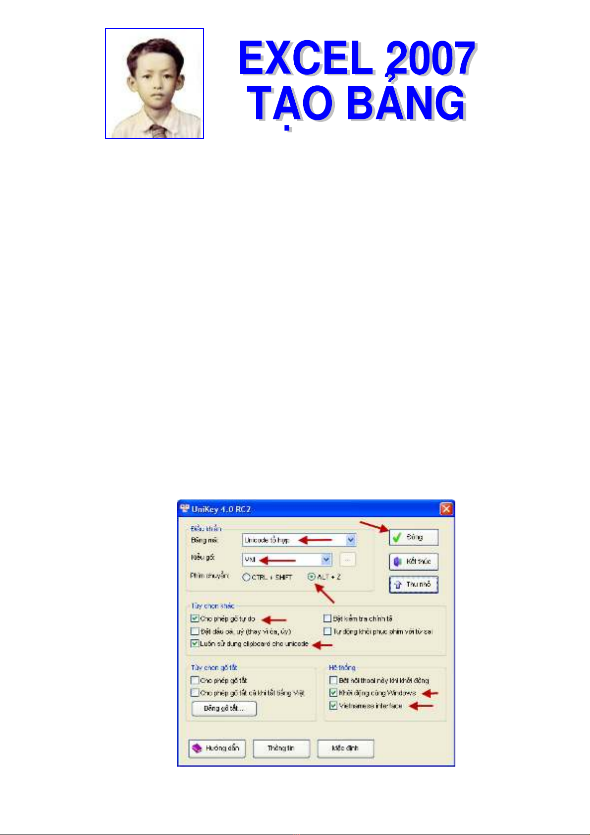 1. Dùng Chương Trình UNIKEY để làm việc tốt hơn . Nên chọn theo Hình :