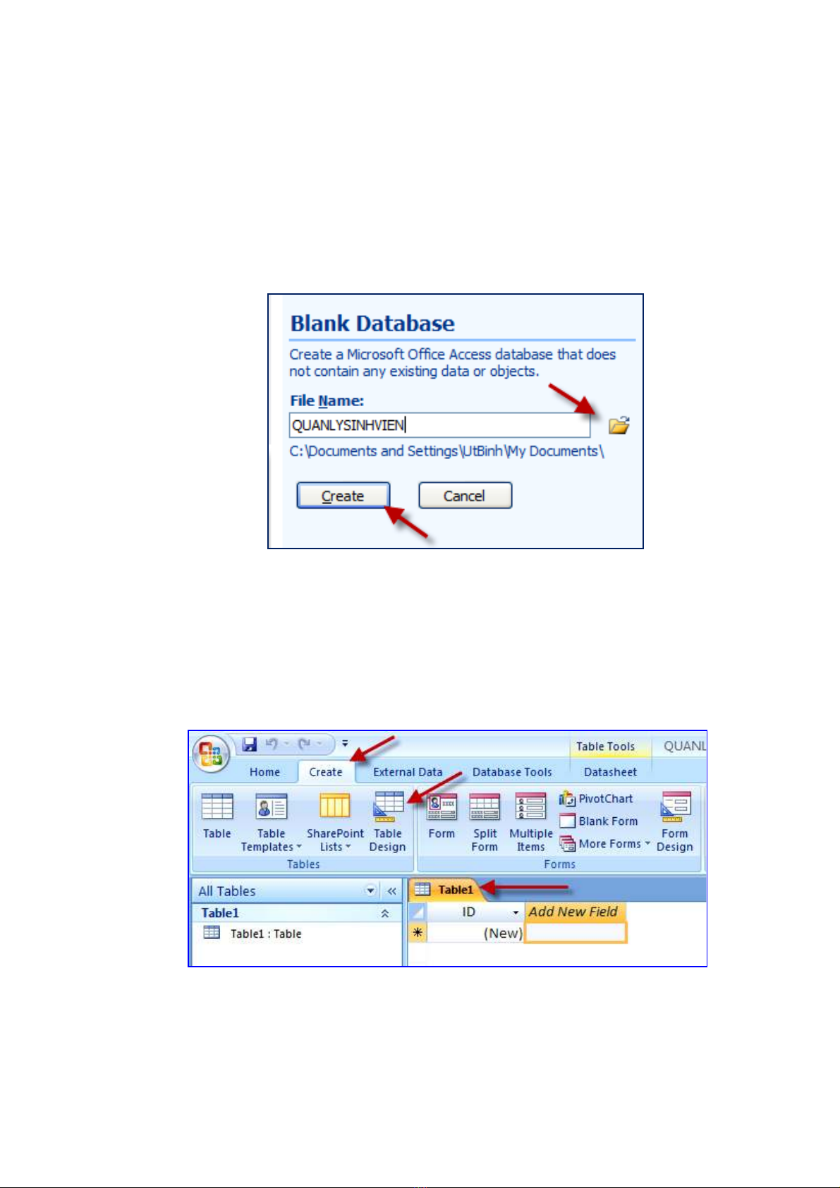 Thực hiện việc tạo Bảng này như sau :