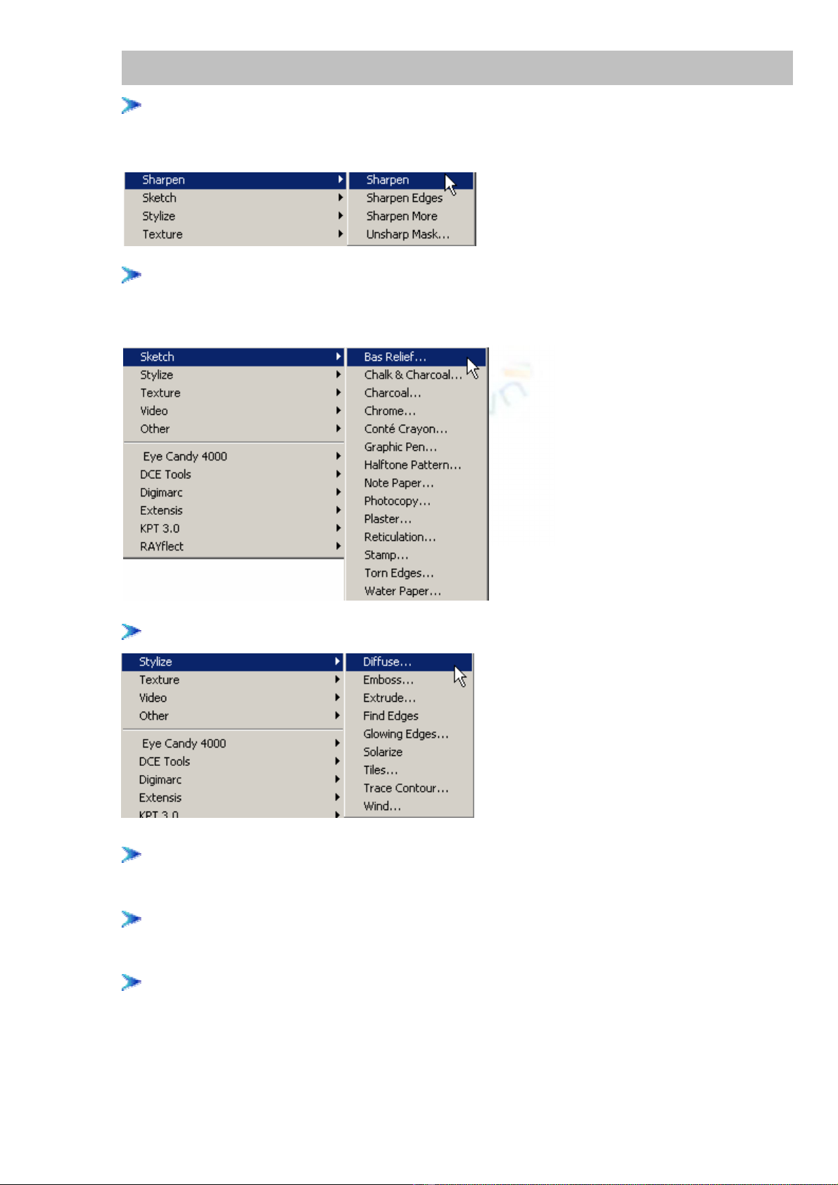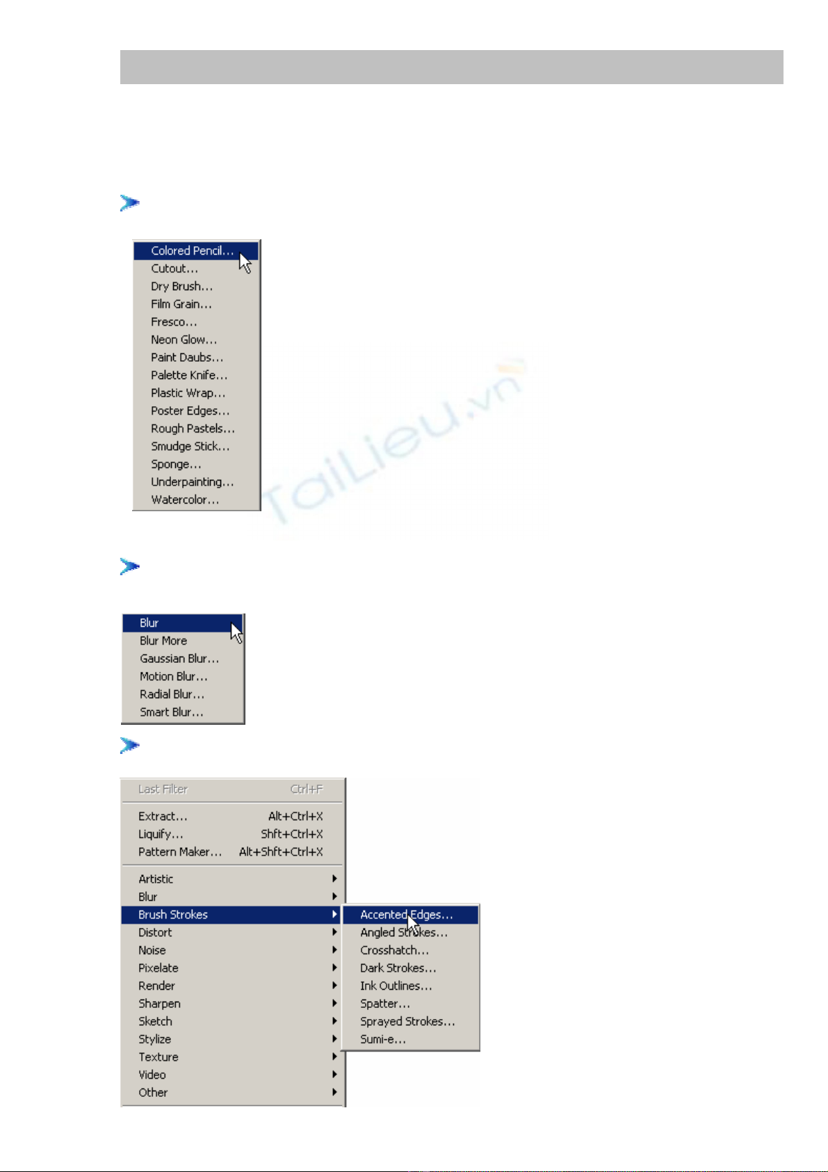 mục liệt kê trên menu Filter,và sẽ được trình bày chi tiết từng bộ lọc một
