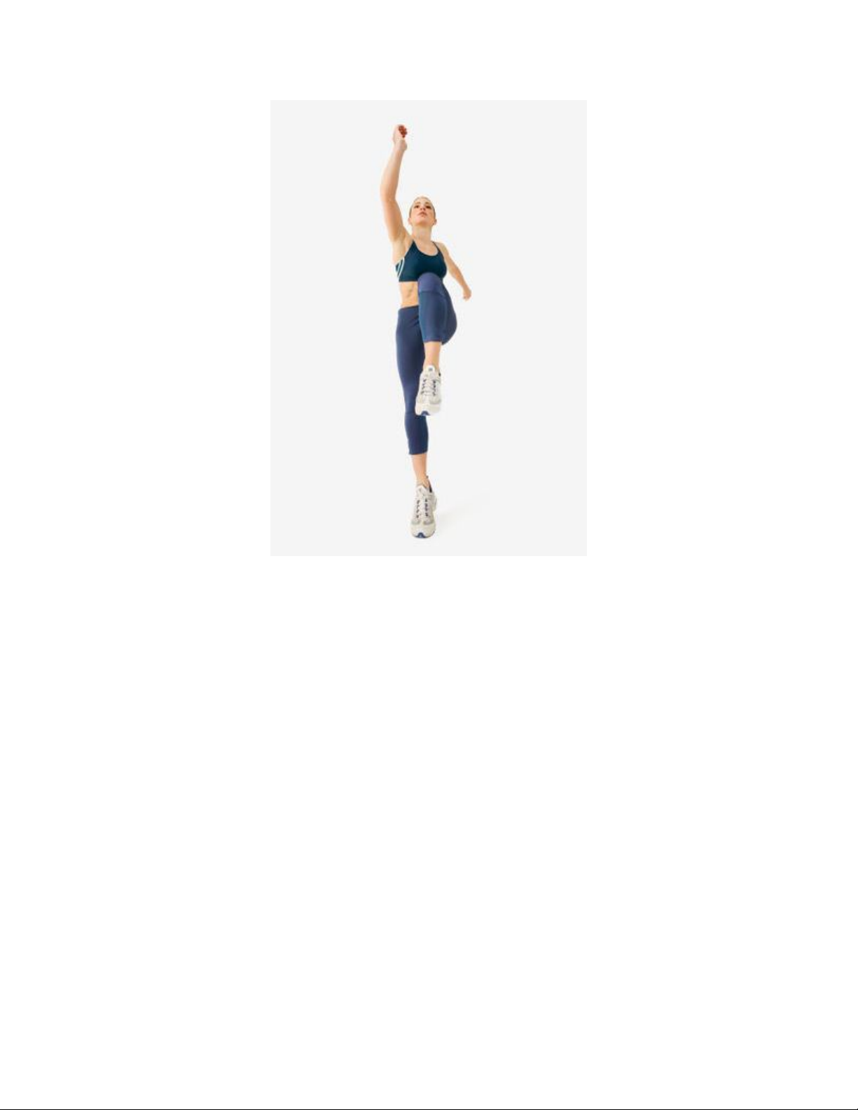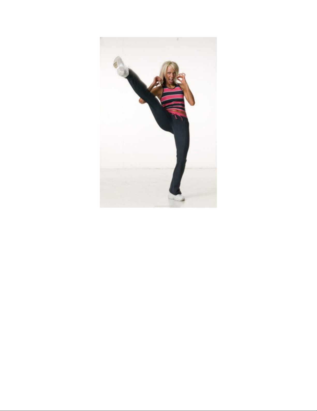 Hai tay để như hình, tư thế chuẩn bị trên một chân, chân còn lại đá cao