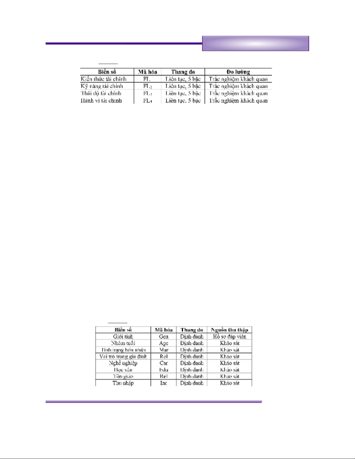 Bảng 2: Danh mục biến xã hội học và nhân khẩu học
