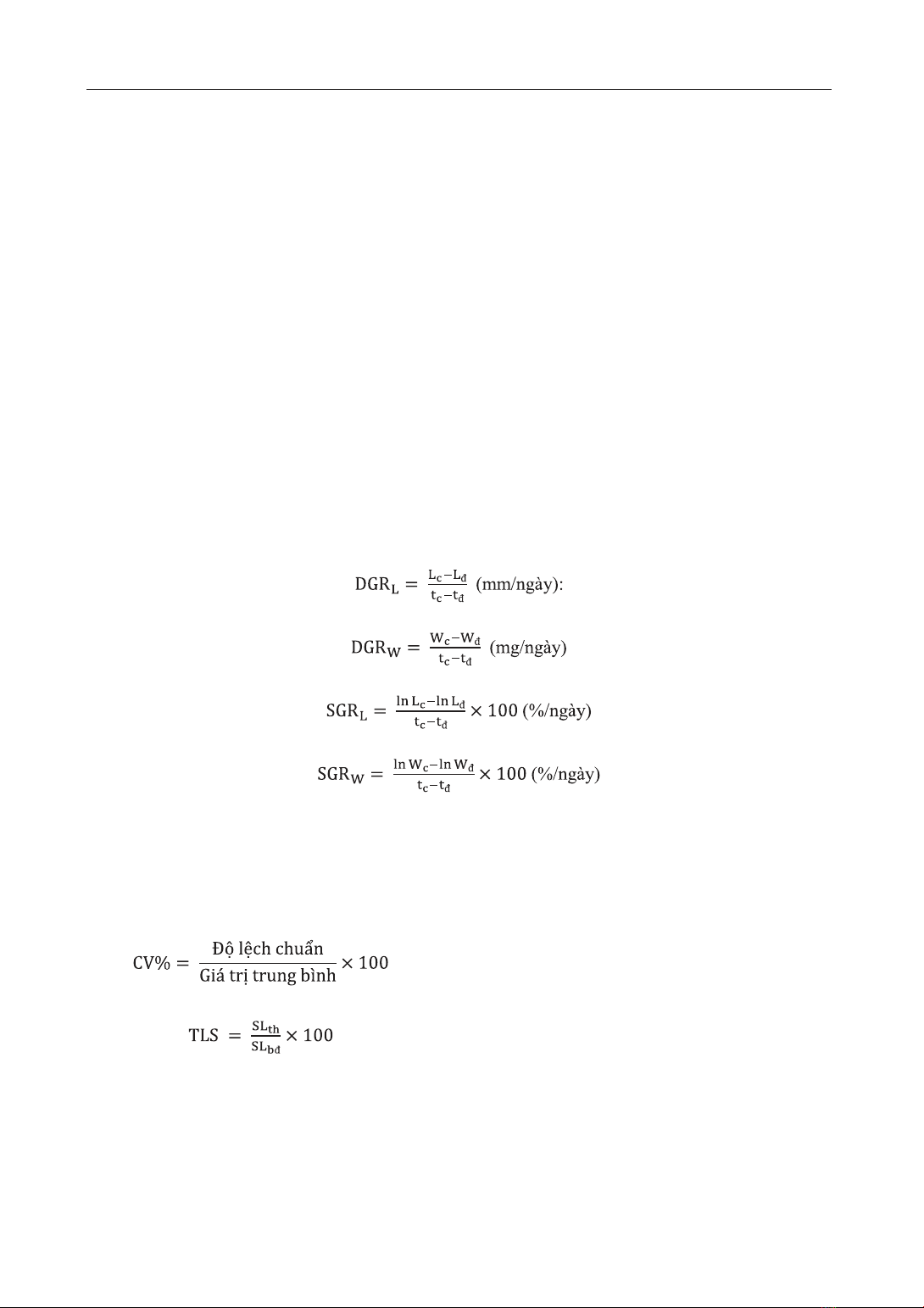 các nghiệm thức lần lượt là 1,33±0,07 mm/ngày (1,99±0,06%/ngày); 1,30±0,09 mm/ngày (2,01±0,13%/ngày);