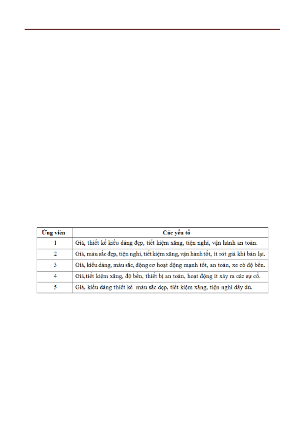 vấn 5 ứng viên có ý định mua hoặc đã mua ô tô để xác định các yếu tố mà người tiêu dùng quan tâm