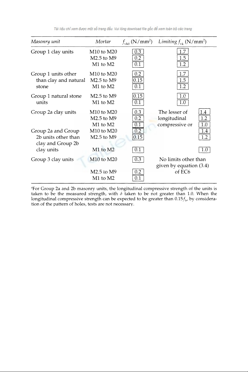 Table 4.7 Values of fvk0 and limiting values of fvk for general-purpose mortar (EC6)a