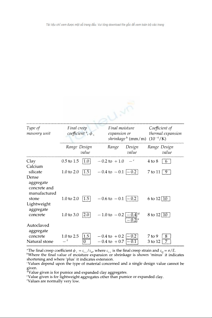 Table 4.8 Deformation properties of unreinforced masonry made with
