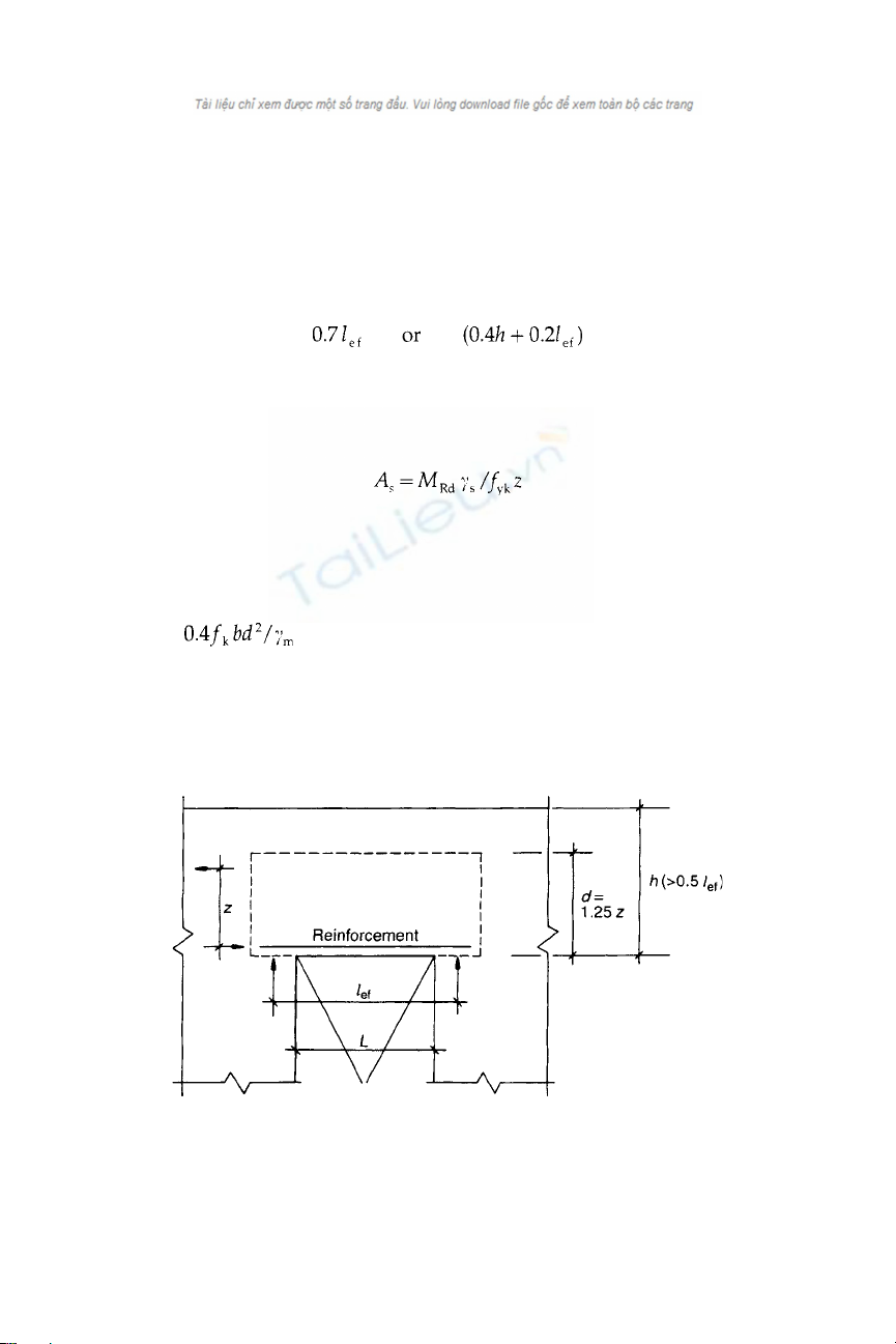 where lef is the effective span, taken to be 1.15×the clear span, and h is the