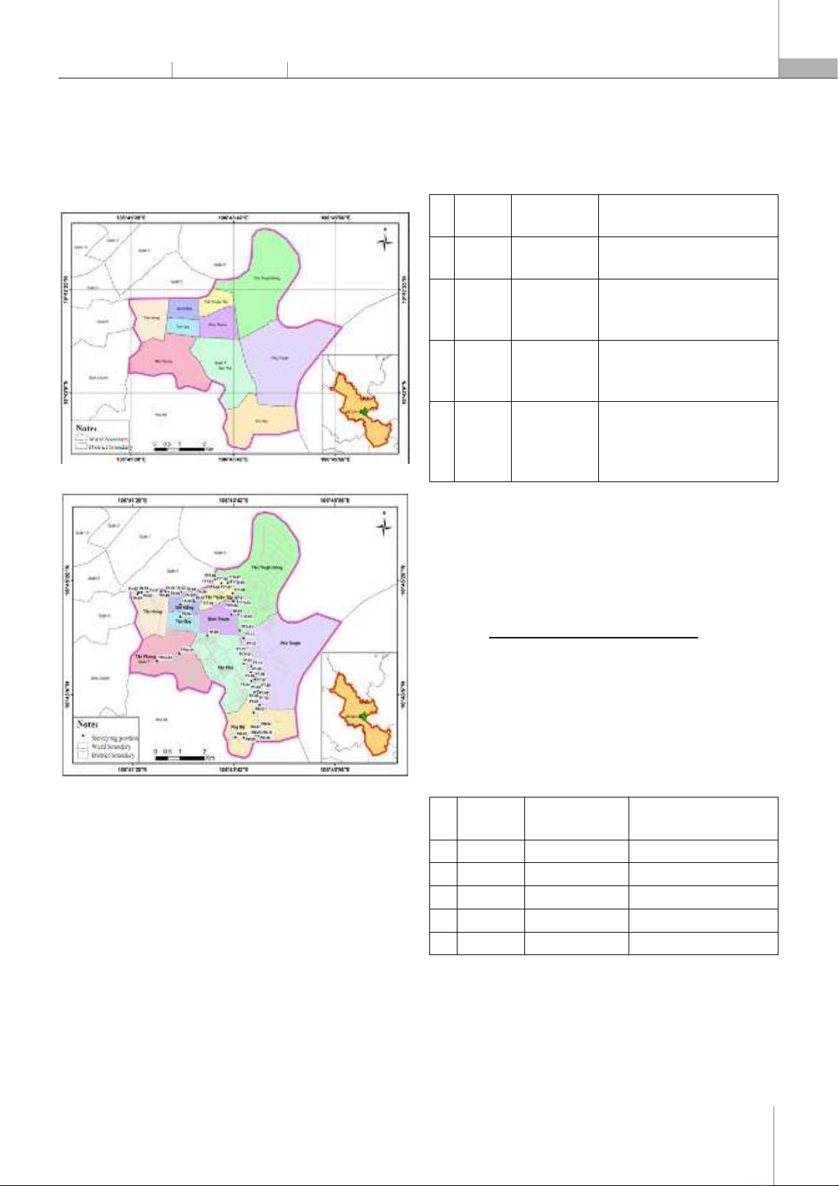 for flooding and 71 survey questionnaires for damage; In addition, the project has conducted more field surveys (recording flooded/non-flooded) for analysis, assessment and zoning. Distribution of survey sites and locations of households interviewed see Figure 2. Figure 1. Map of District 7, Ho Chi Minh City Figure 2. Locating the flood and damage survey area in District 7 2.2. Assessment of urban flooding Assessment of urban flooding is determined by the determining frequency of occurrence in order to mild, moderate and severe flooding [4] as follows: PTH (%) = Nflood /Nmax (%) (2) There are: - PTH (%) - the frequency of occurrence of urban flooding causing the damage. - Nflood - the number of occurrences of flooding at a location causing damage to residents. - Nmax - the maximum number of occurrences of flooding causing damage in the area (Nmax = 24). The classification of flooding levels by frequency of occurrence [4] as shown in the table below (See Table 1). Table 1. Classification of the frequency of occurrence of damaging urban flooding No