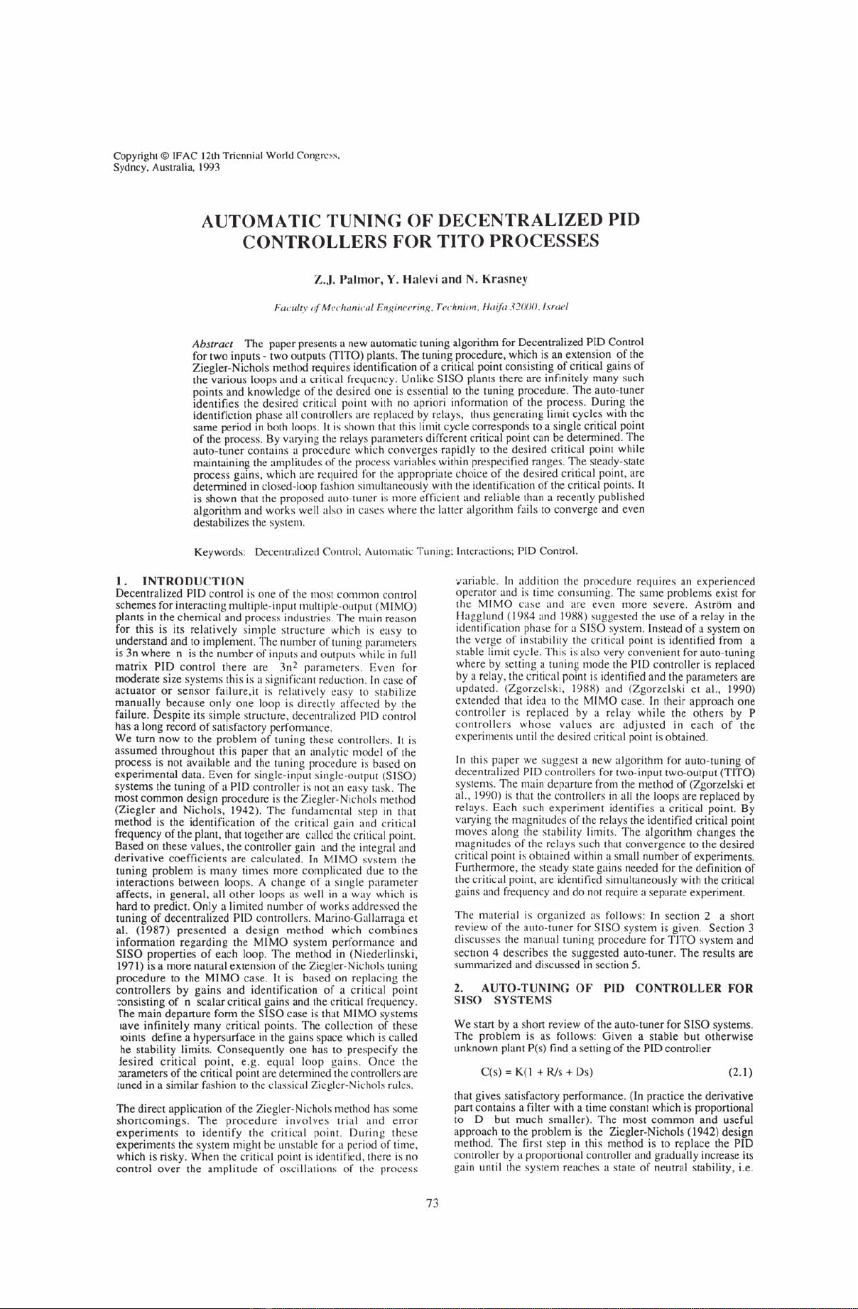 Keywords: Decentralized Control; Automatic Tuning; Interactions;