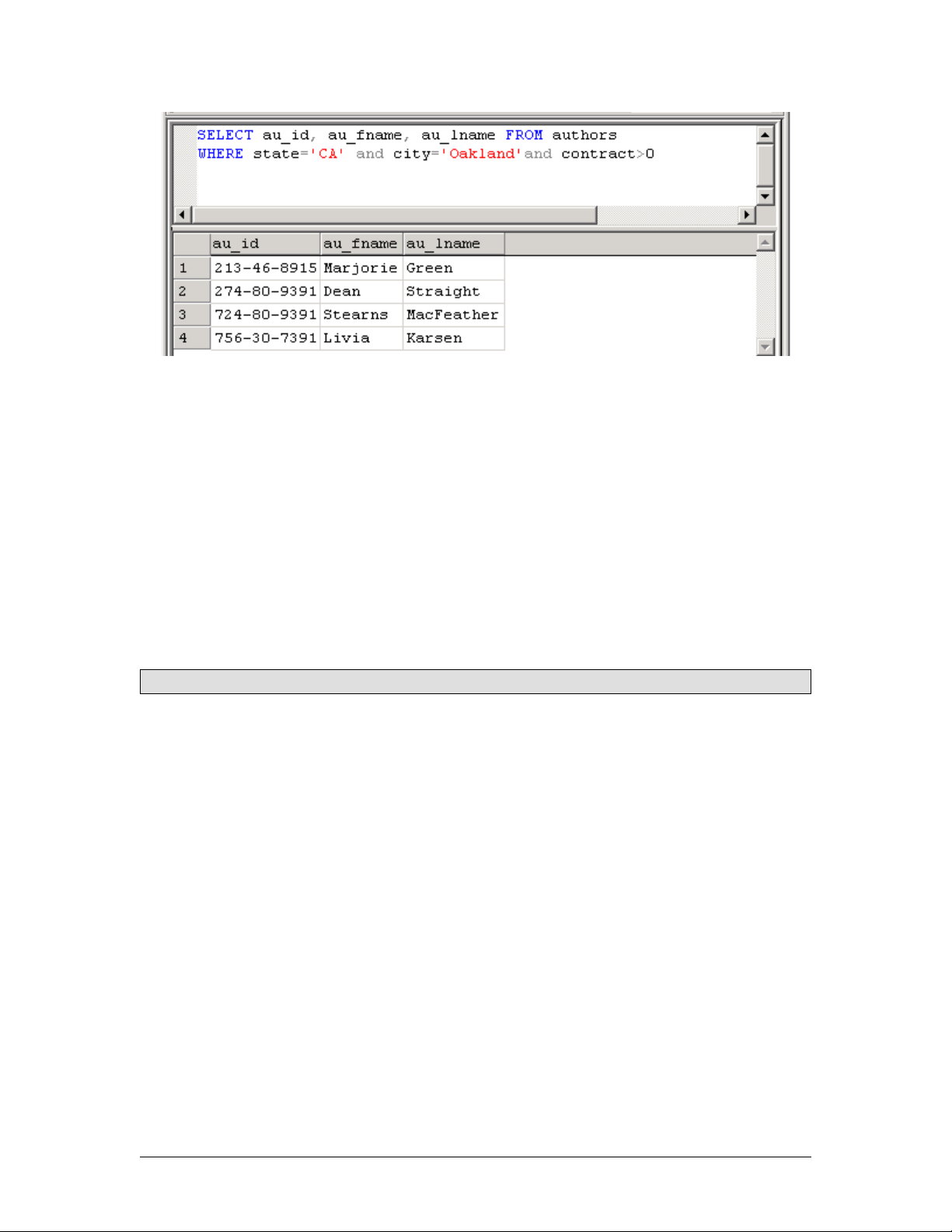 Hình 10.3: Dùng các toán tử logic và quan hệ trong mệnh đề WHERE