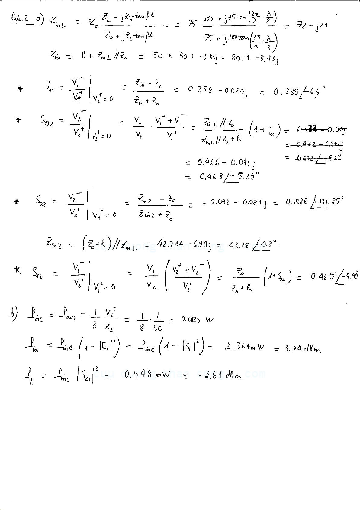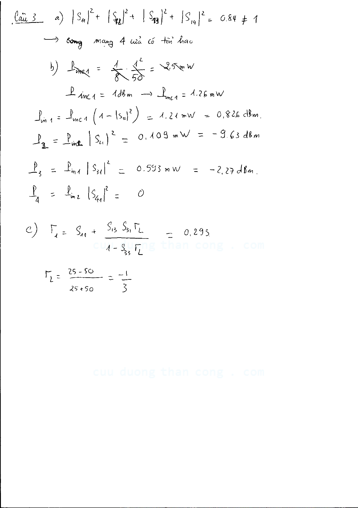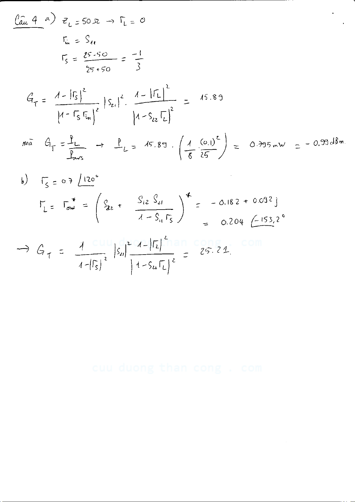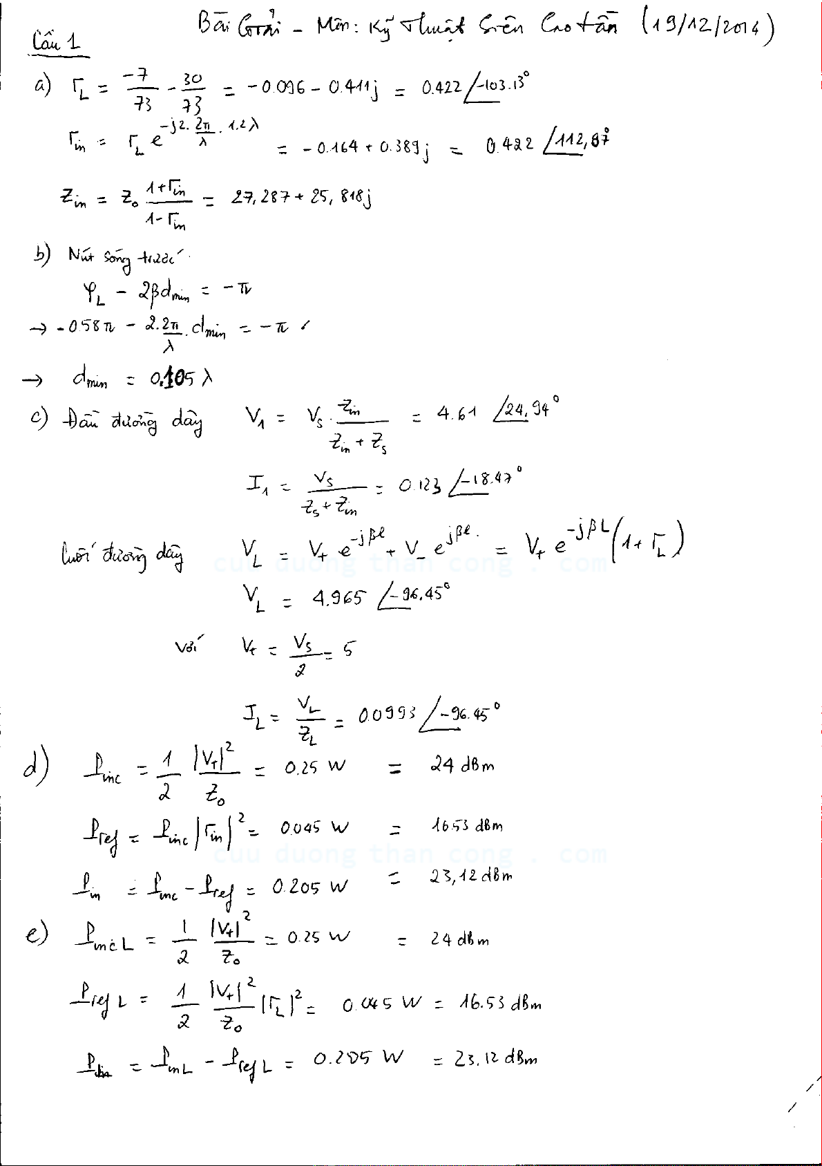 Bài giải đề thi Kỹ thuật siêu cao tần