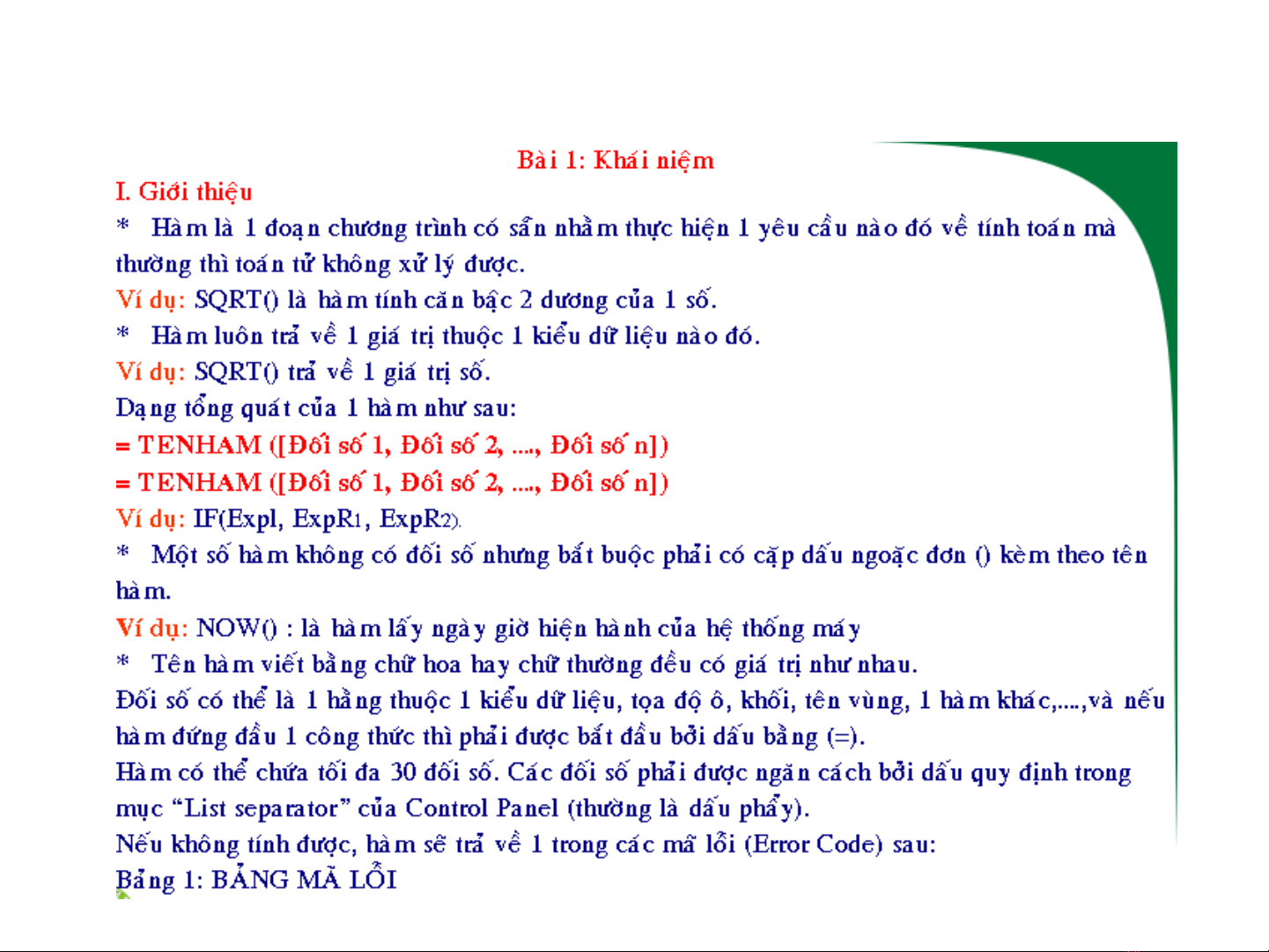 Bài giảng và bài tập mẫu Microsoft Excel 2007 - Chương 4: Giới thiệu và sử dụng các hàm