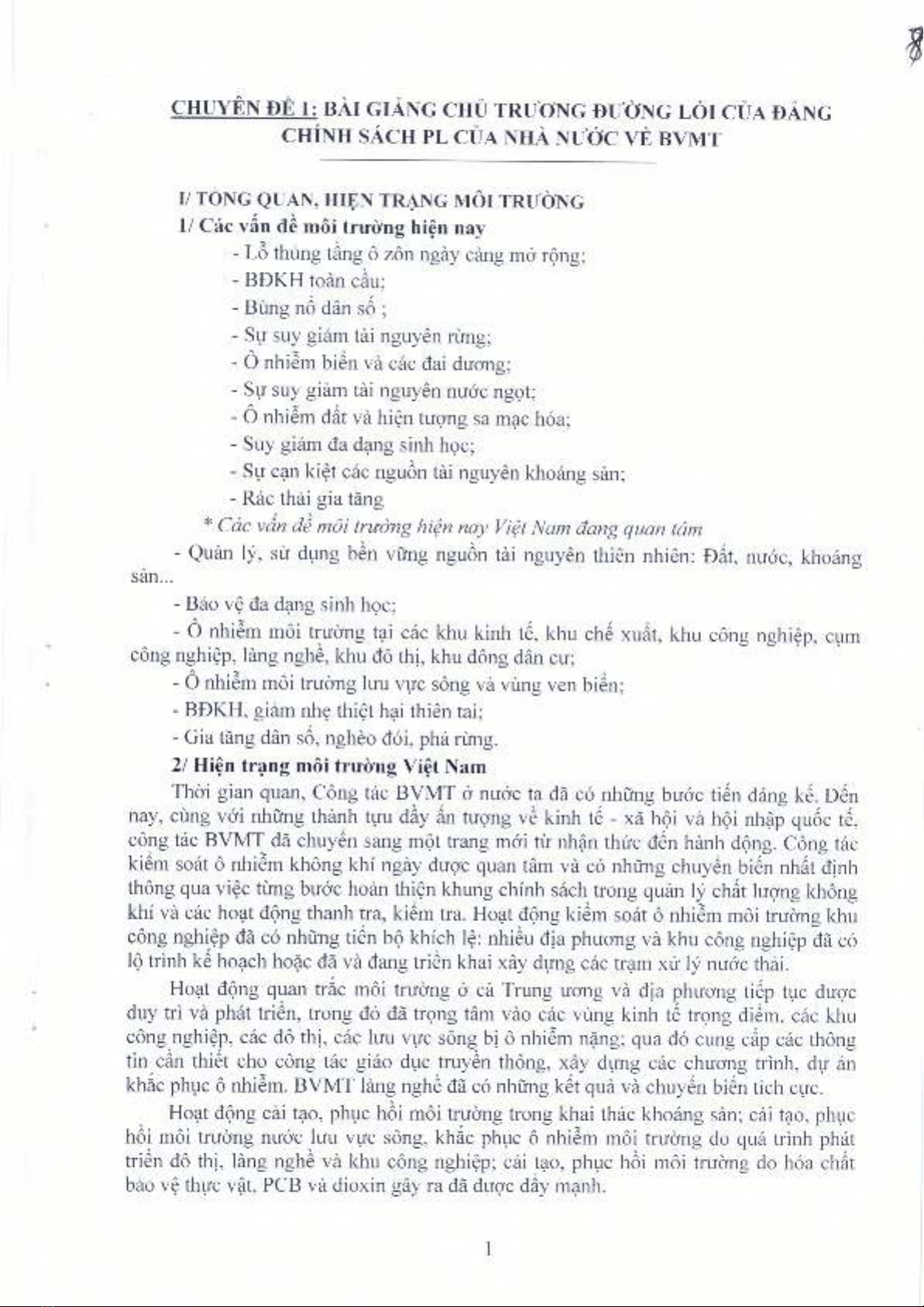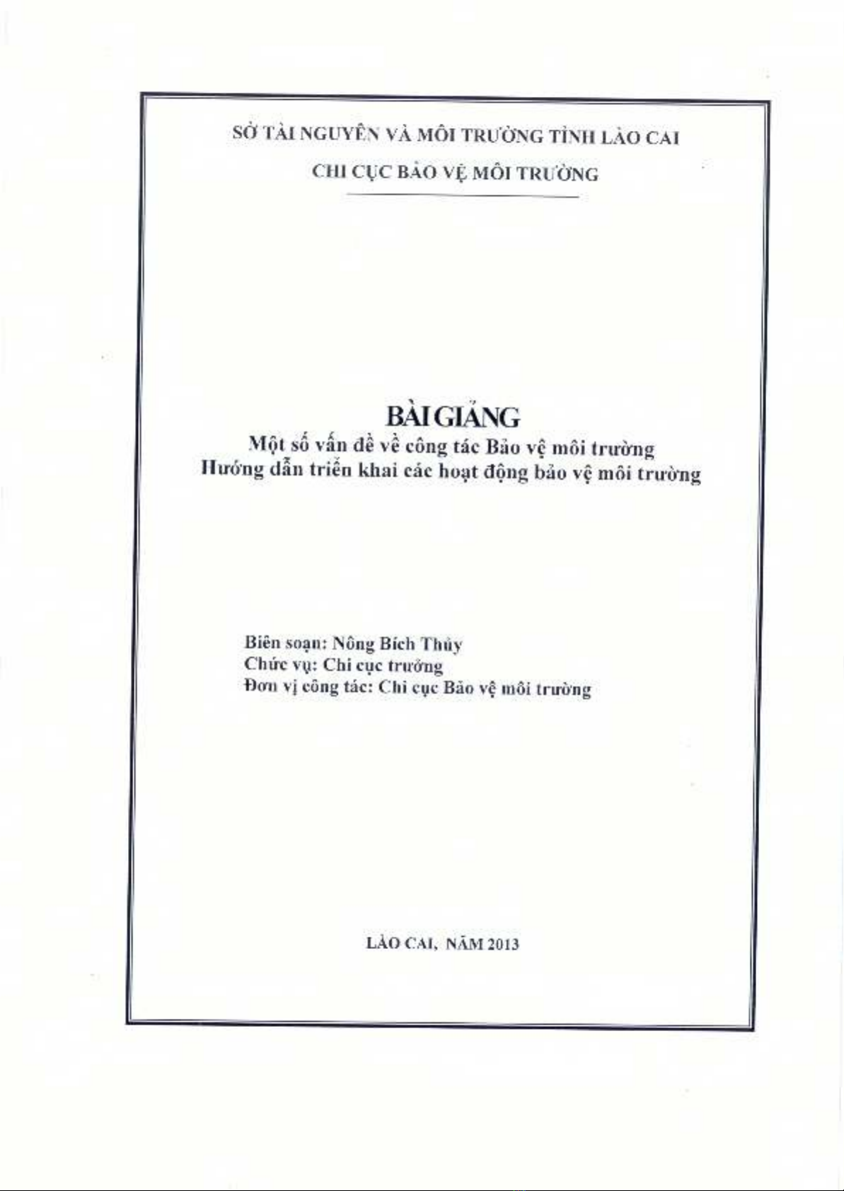 Bài giảng Một số vấn đề công tác bảo vệ môi trường hướng dẫn triển khai các hoạt động bảo vệ môi trường - Nông Bích Thủy