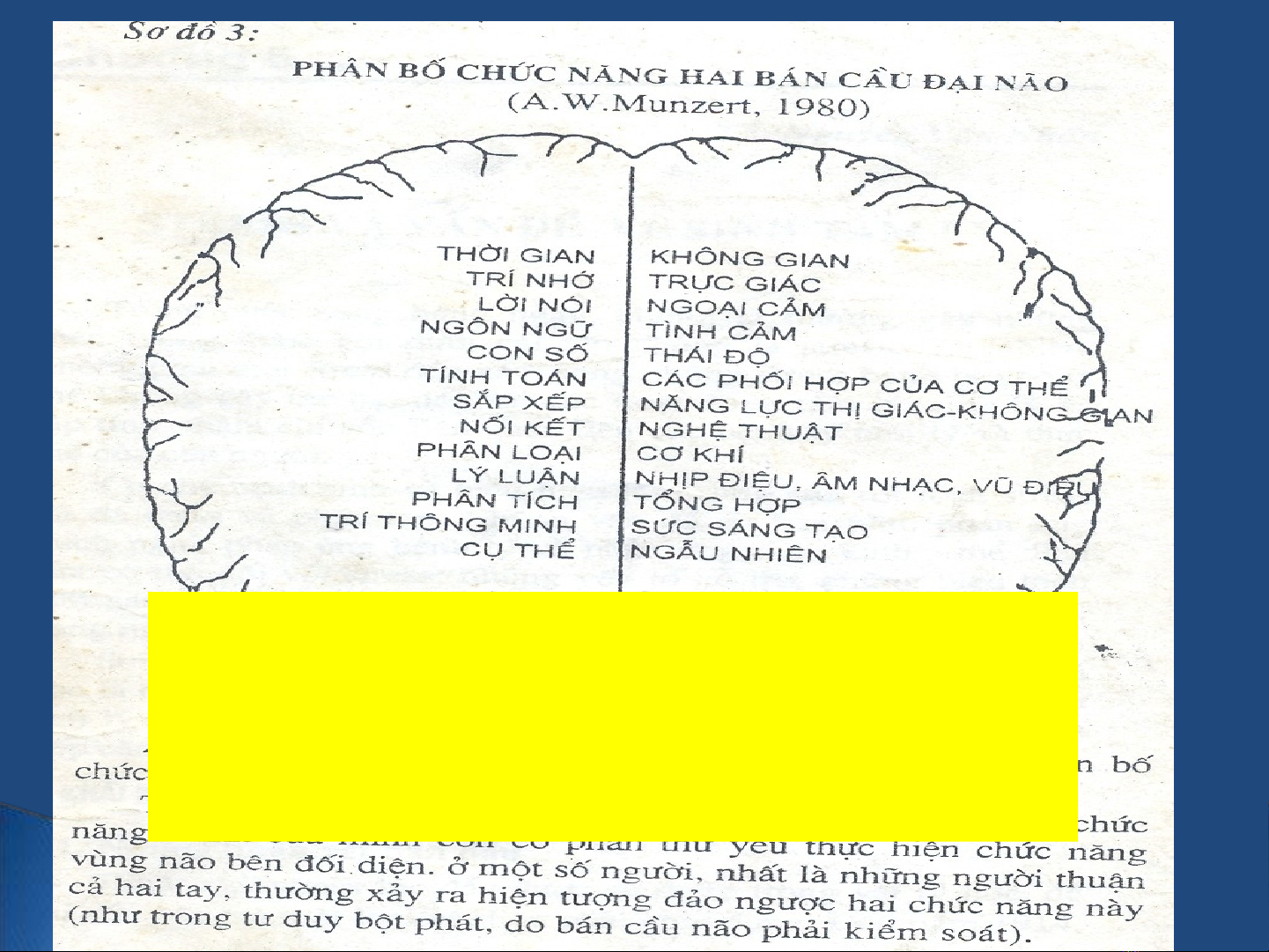 yếu thực hiện chức năng vùng não bên