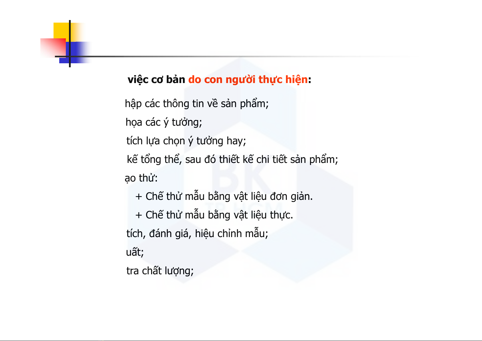 - Hầu hết các giai đoạn đều do con người trực tiếp thực hiện;