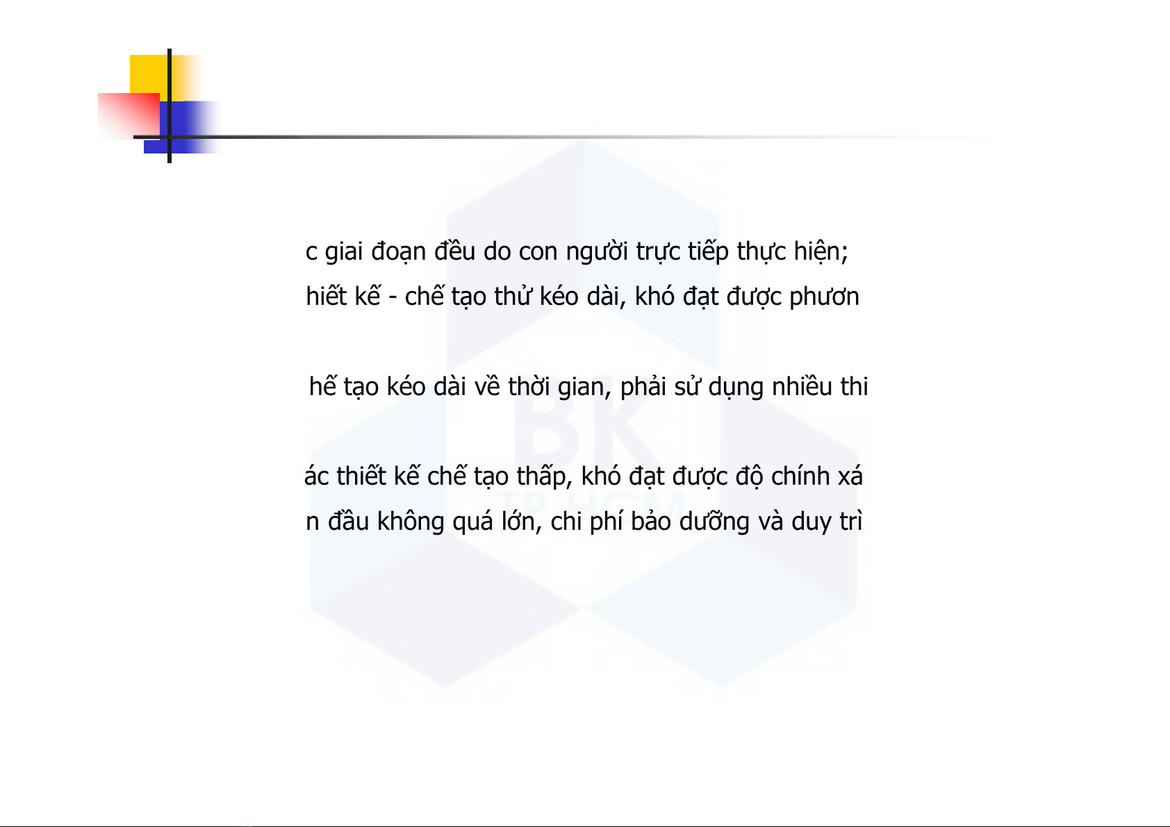 - Quá trình thiết kế - chế tạo thử kéo dài, khó đạt được phương án thiết kế