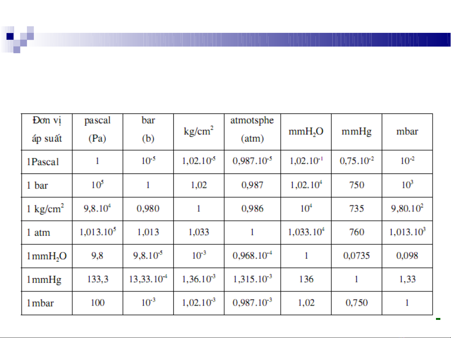 Công nghi p: bar (1bar = 10ệ5 Pa)