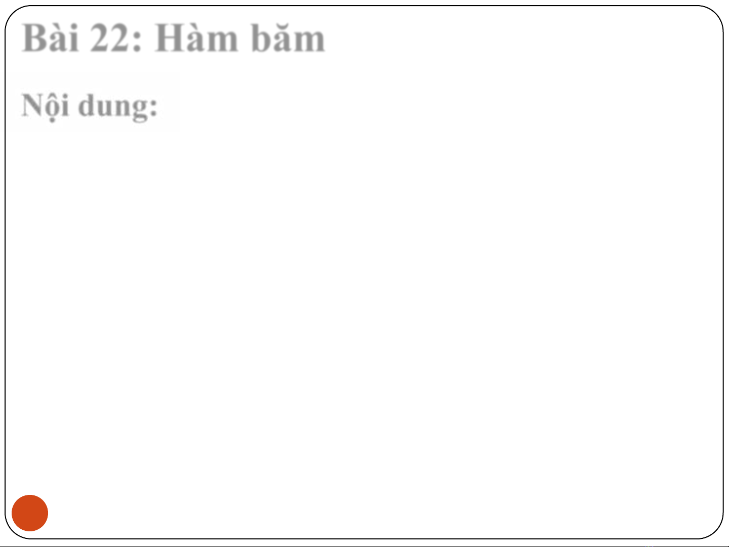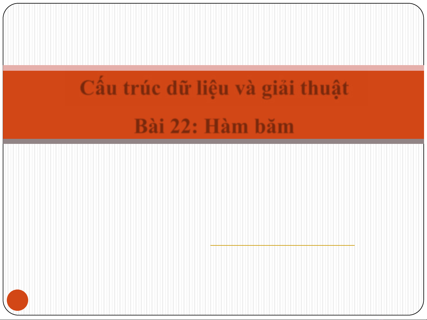 "Bài giảng Cấu trúc dữ liệu và giải thuật – Bài 22: Hàm băm" trình bày bài toán, hàm băm, giải quyết xung đột, một số ví dụ sử dụng hàm băm.