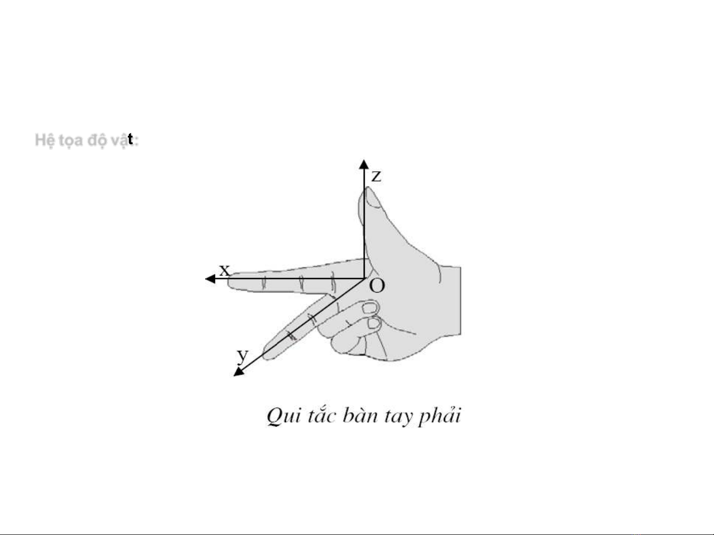 Hệ tọa độ gốc: Oyxz với các véc tơ đơn vị là x, y, z
