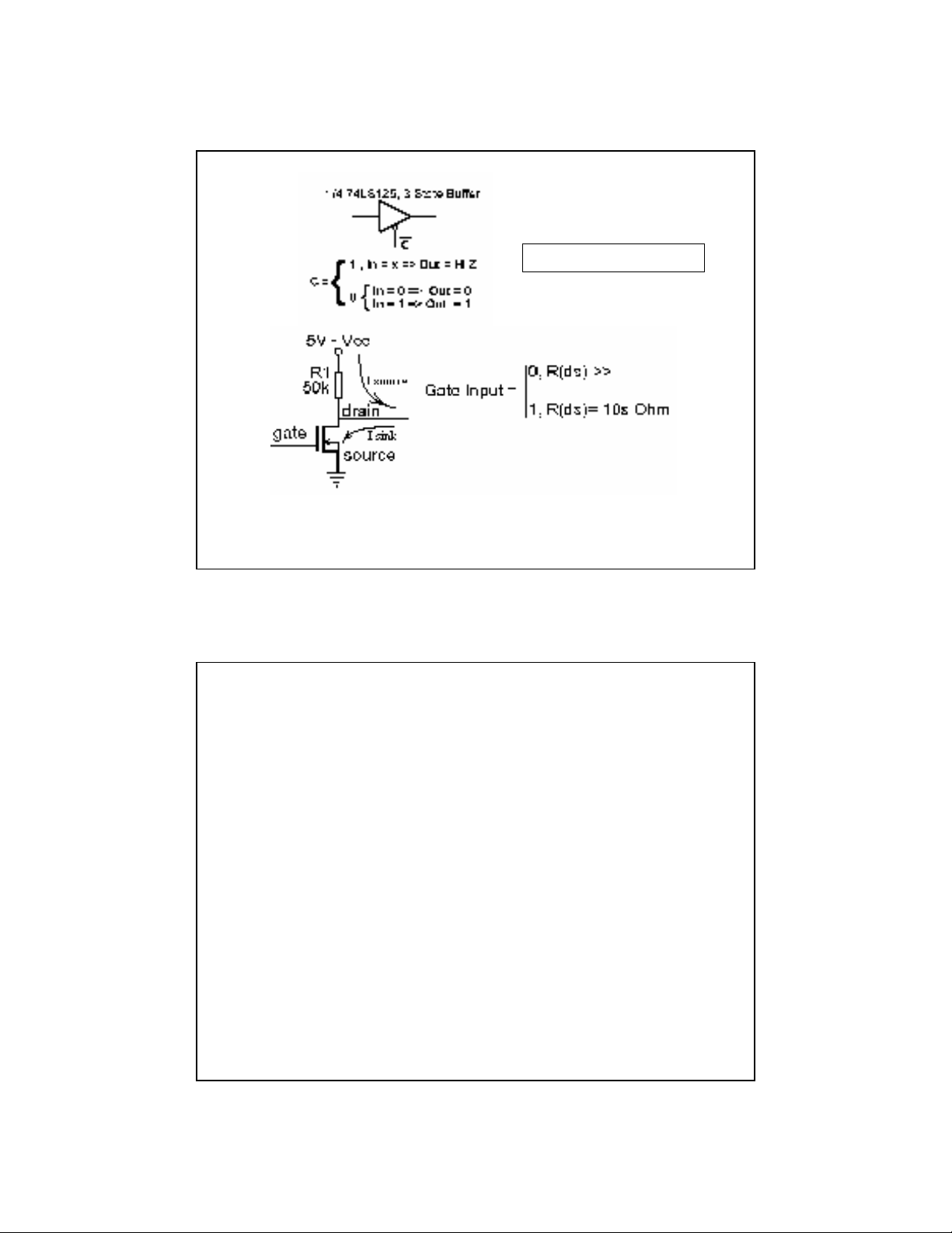 gate = 1 => R(ds) MOSFET = ON => pin = 0
