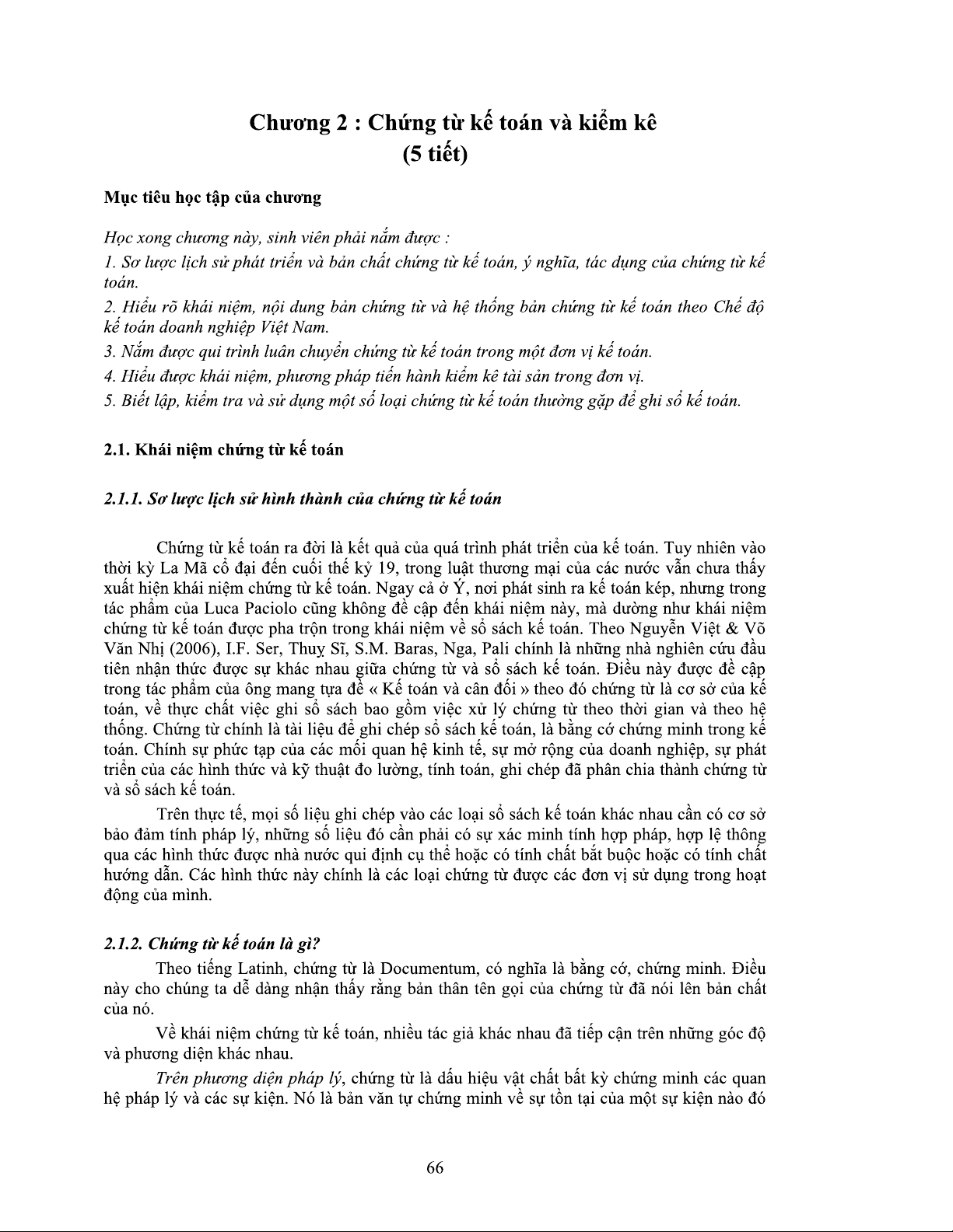 Bài giảng Chương 2: Chứng từ kế toán và kiểm kê