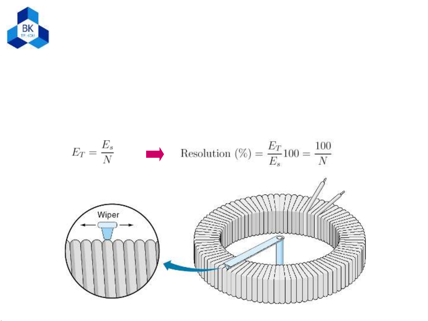 Nếu biến trở có dạng dây quấn với Nvòng, thì độ phân giải của biến