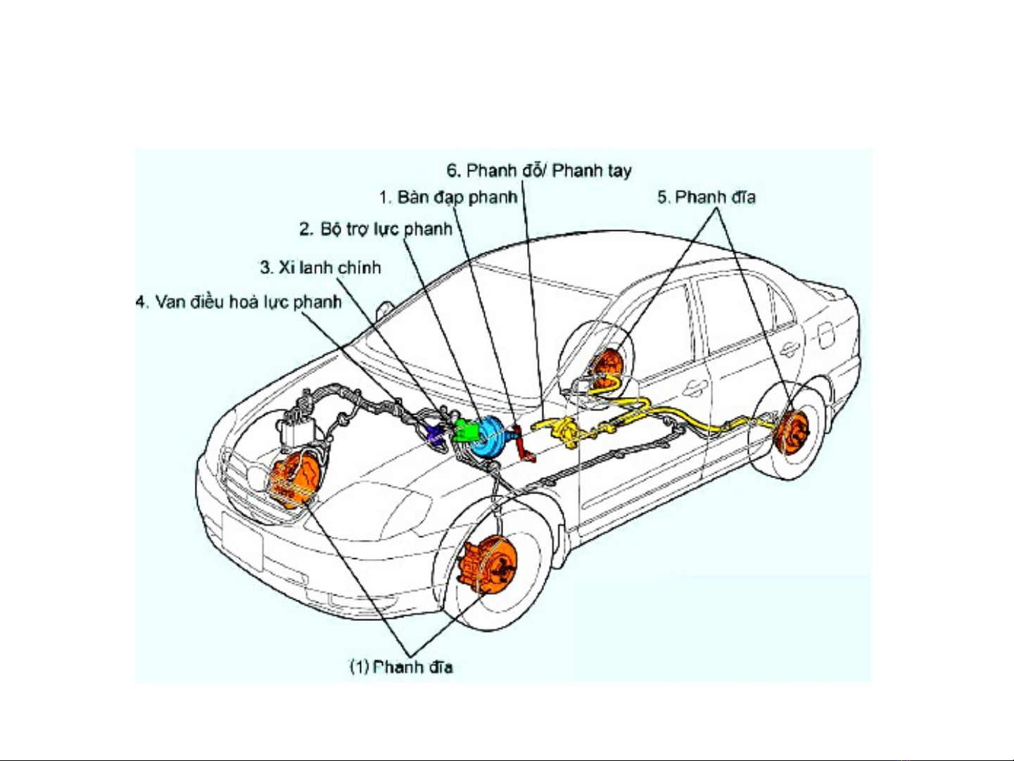 Nơi bố trí cơ cấu phanh, xi lanh chính, bàn đạp phanh?
