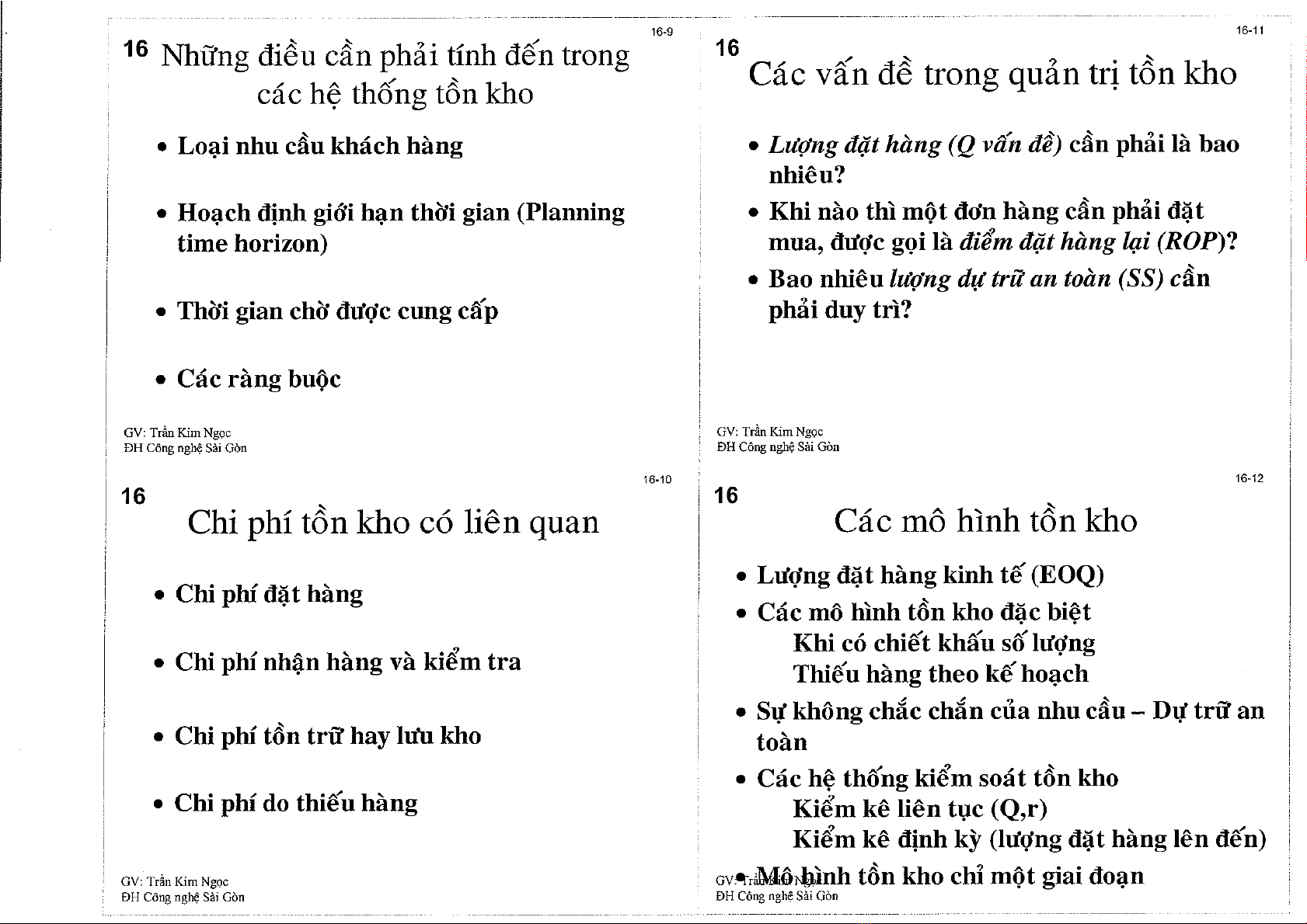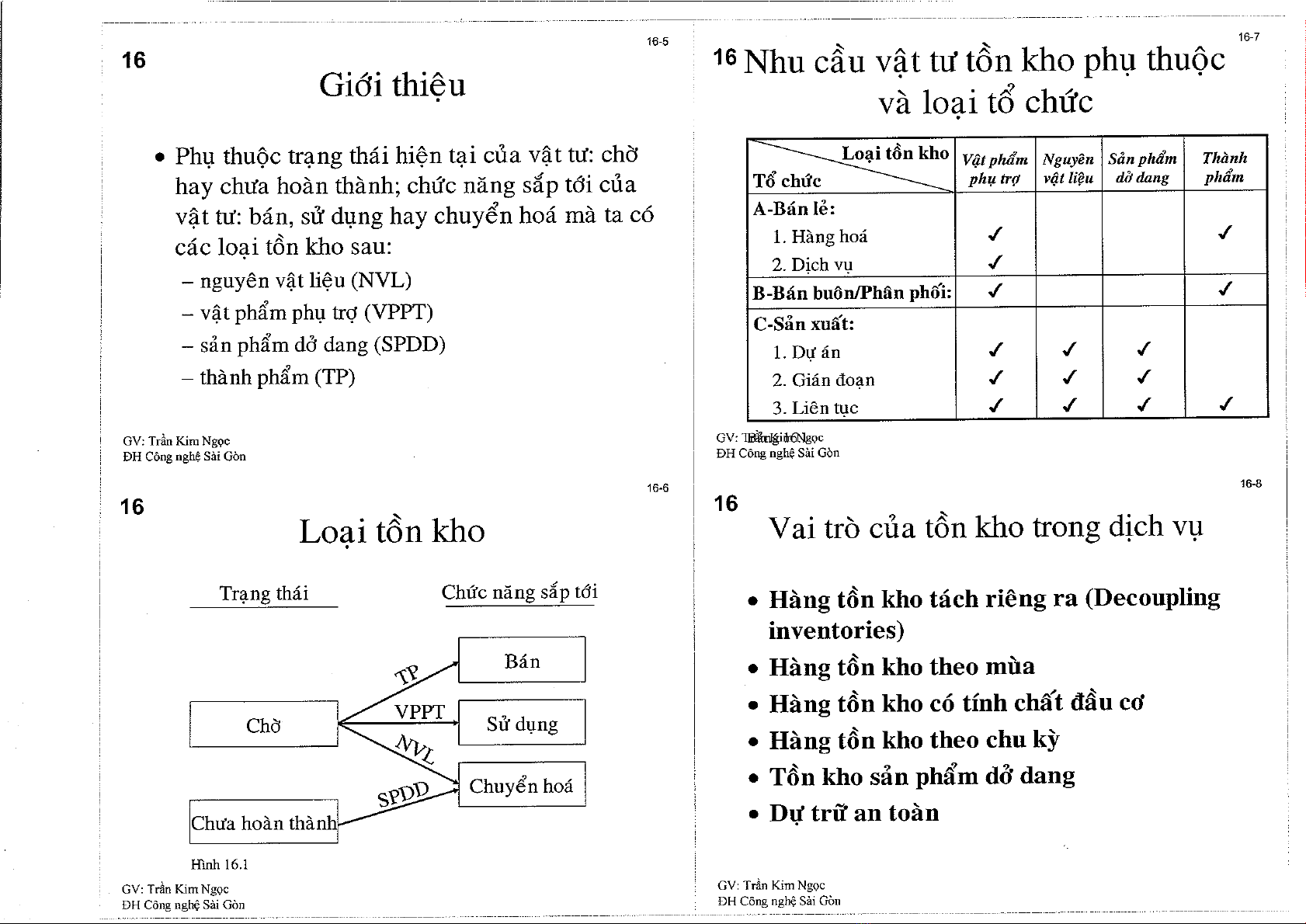 Bài giảng Chương 16: Quản lý hàng tạo điều kiện thuận lợi tập trung trình các khía cạnh về loại tồn kho; nhu cầu vật tư tồn kho phụ thuộc và loại tổ chức; vai trò của tồn kho trong dịch vụ; các vấn đề trong quản trị tồn kho; những điều kiện cần phải tính đến trong các hệ thống tồn kho;...
