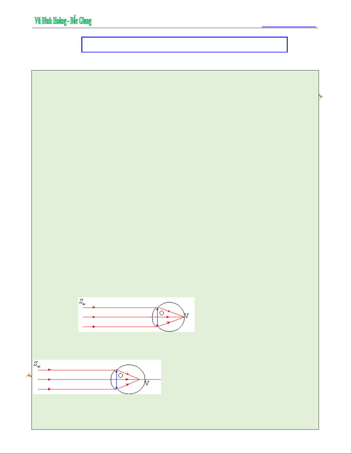VD7: Mắt bình thường về già khi điều tiết tối đa thì tăng tụ số của thủy tinh thể thêm 1dp.