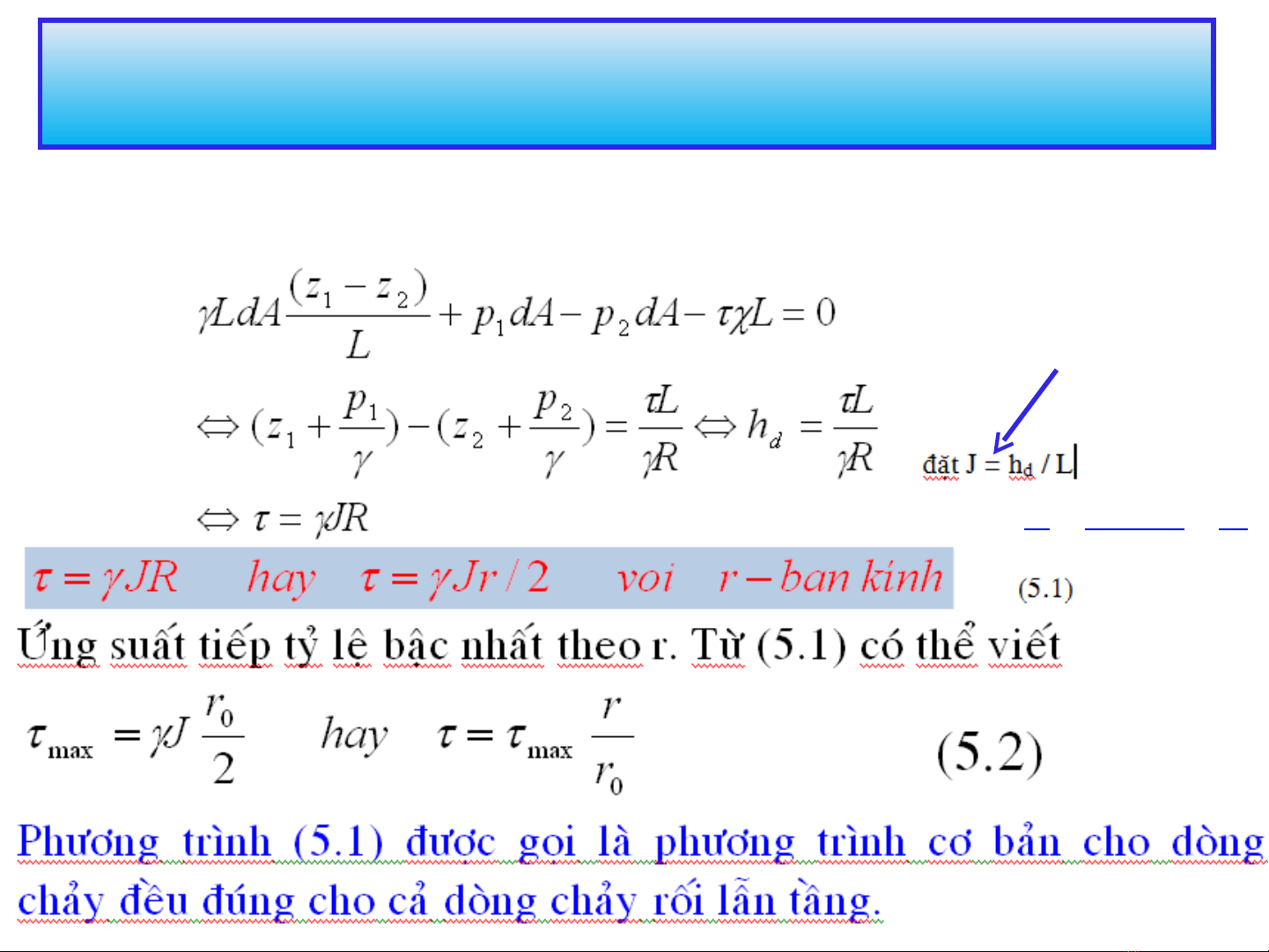 Trong oáng xeùt ñoaïn vi phaân doøng chaûy ñeàu hình truï coù