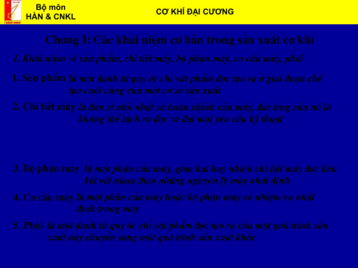 I. Kh¸i niÖm vÒ s¶n phÈm, chi tiÕt m¸y, bé phËn m¸y, c¬ cÊu m¸y, ph«i