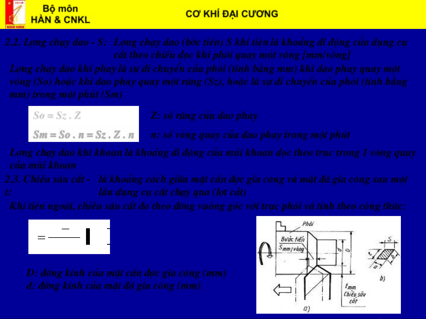 2.2. Lîng ch¹y dao - S: Lîng ch¹y dao (bíc tiÕn) S khi tiÖn lµ kho¶ng di ®éng cña dông cô