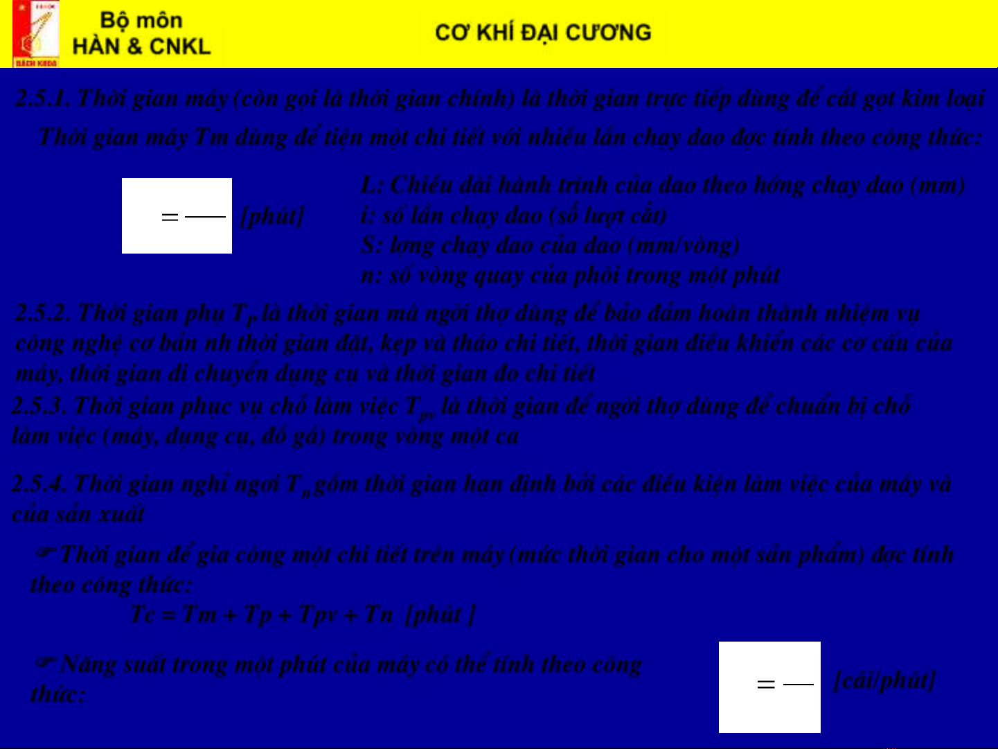 2.5. Thêi gian ®Ó gia c«ng mét chi tiÕt trªn m¸y gåm thêi gian m¸y, thêi gian phô, thêi gian