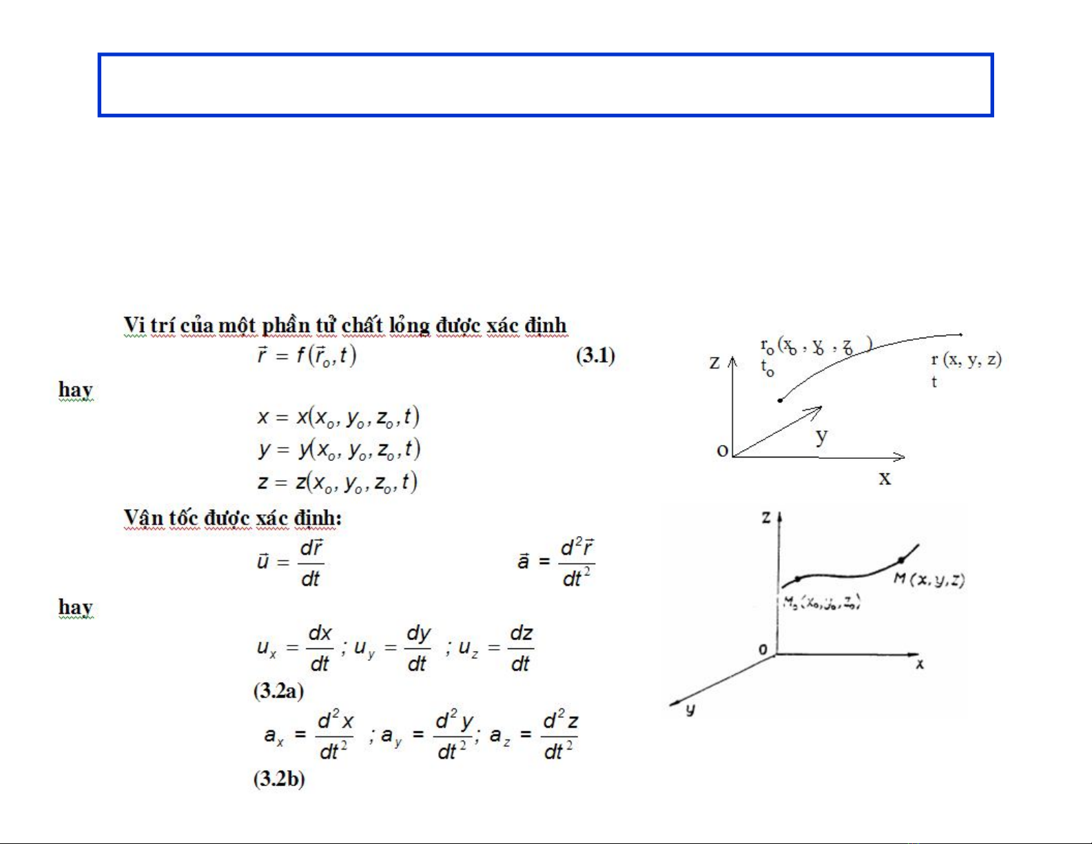 • Trong m ột hệ toạ độ xác định, chuyển động của lưu chất